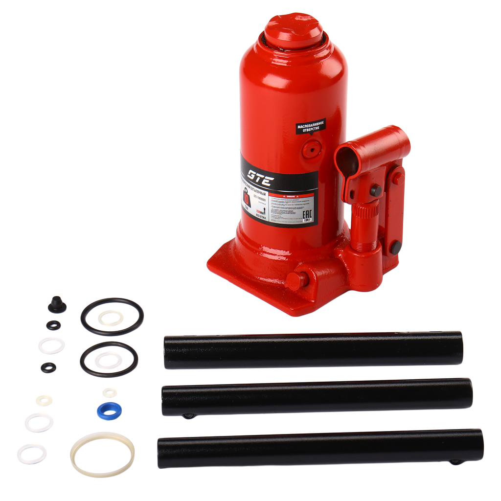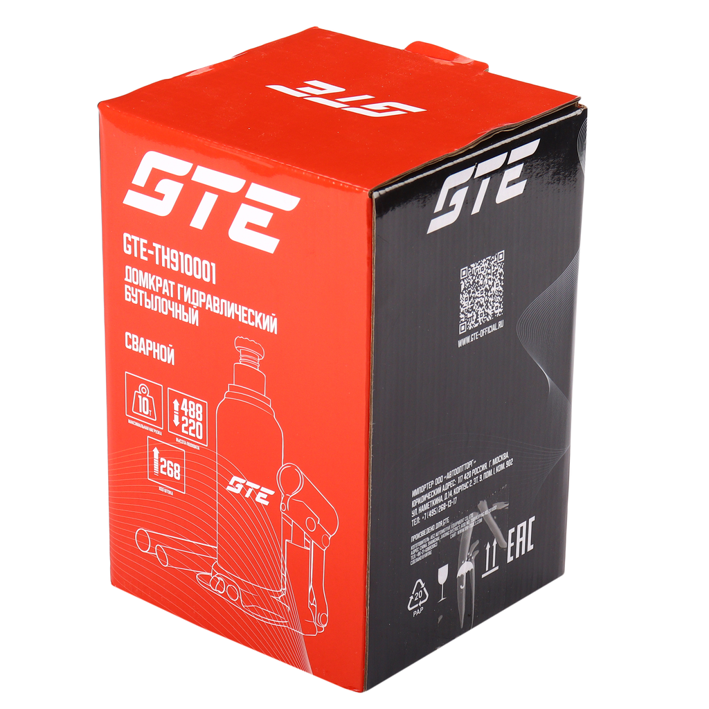 Бутылочный домкрат GTE-TH910001 отличается компактностью конструкции, простотой обслуживания и надежностью в эксплуатации. Плавный подъем груза при небольшом рабочем усилии благодаря высокому передаточному отношению между площадями поперечного сечения цилиндра и плунжера насоса. Не требует при работе использования вспомогательных приспособлений. Может использоваться в качестве рабочего элемента в более сложных устройствах, таких как прессы, трубогибы и других.