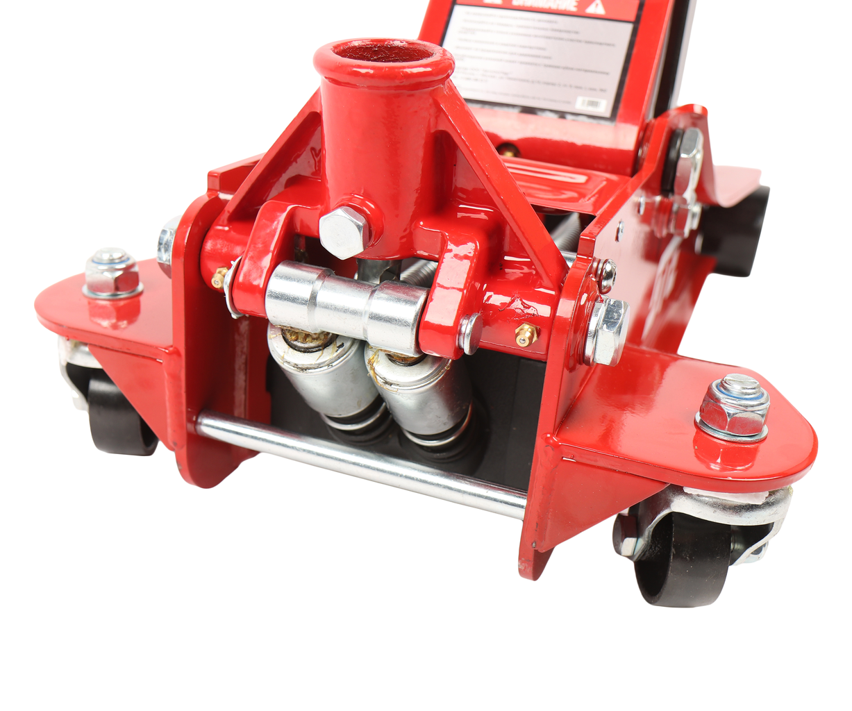 Прочная стальная конструкция с увеличенной толщиной металла корпуса обеспечивает дополнительный запас прочности домкрата.