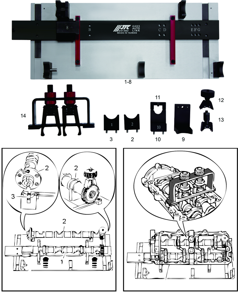 Специальный набор для фиксации распредвалов в ВМТ.