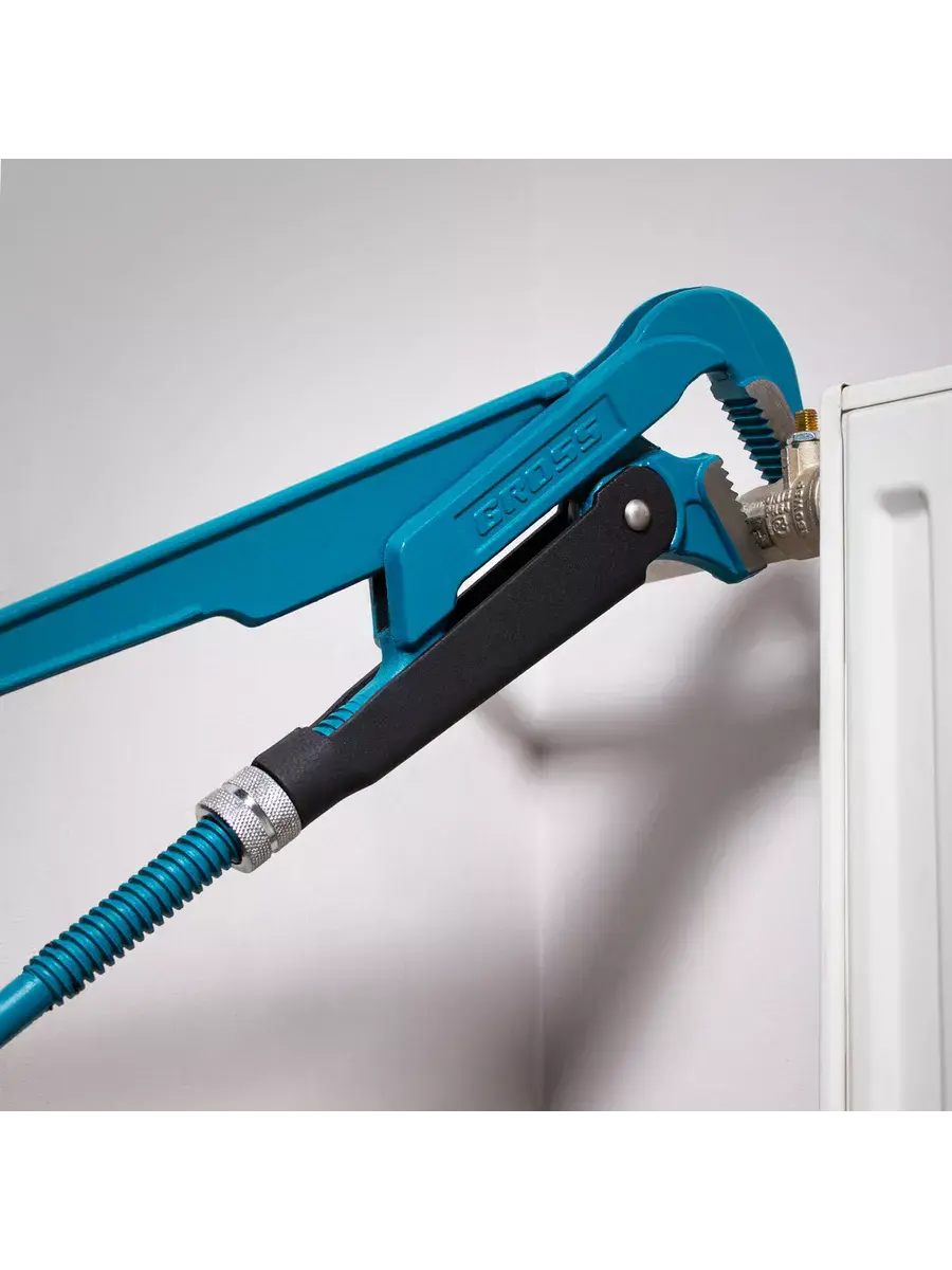 Ключ трубный рычажный, №3, 2", цельнокованый, CrV, тип - "L" Gross 15605. Ключ газовый является незаменимым инструментом для профессионалов и любителей ремонтных работ. Он идеально подходит для затягивания и разгрузки газовых штуцеров различных диаметров благодаря наличию клещей переставных. Ключ трубный оснащен удобным рычажным механизмом, который позволяет легко и точно регулировать затяжку, не боясь надломить резьбу или сломать деталь. Клещи переставные изготовлены из прочного материала, что гарантирует его долгосрочную работоспособность и надежность. Ключ рычажный - отличный выбор для тех, кто ценят качество и функциональность инструмента.