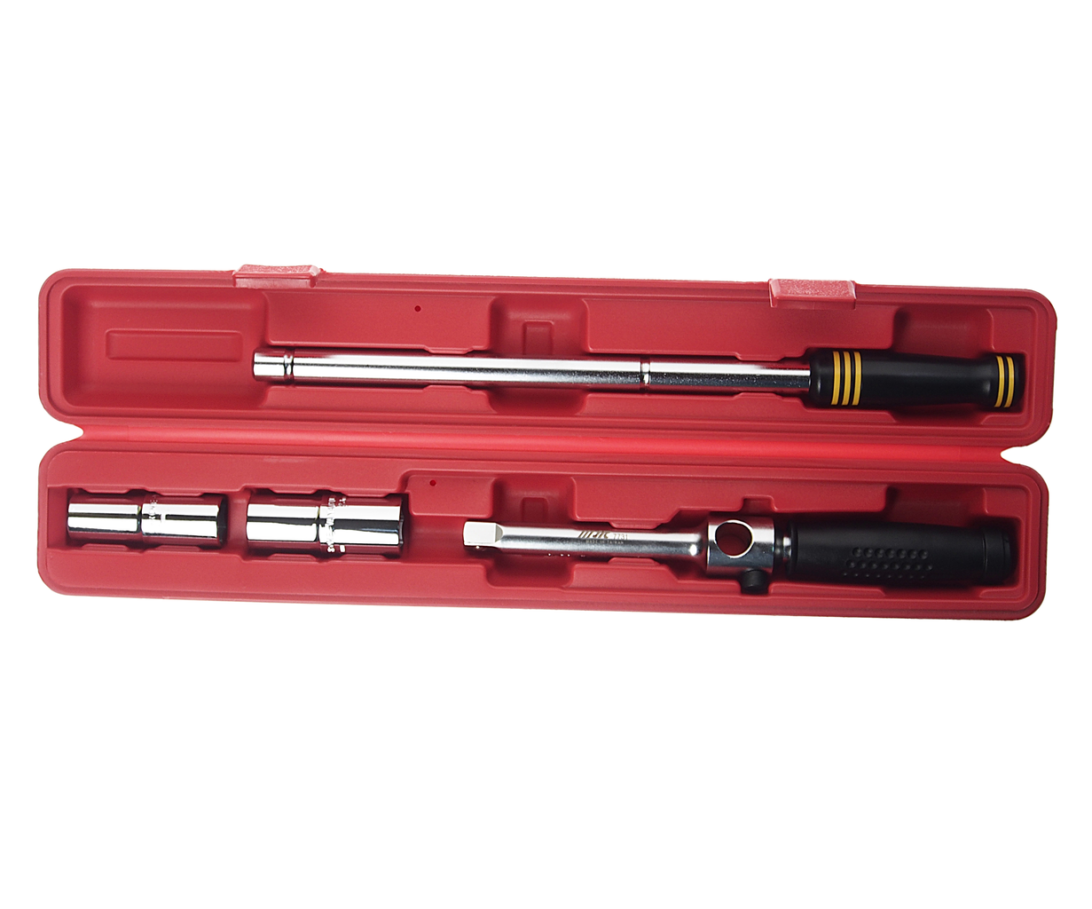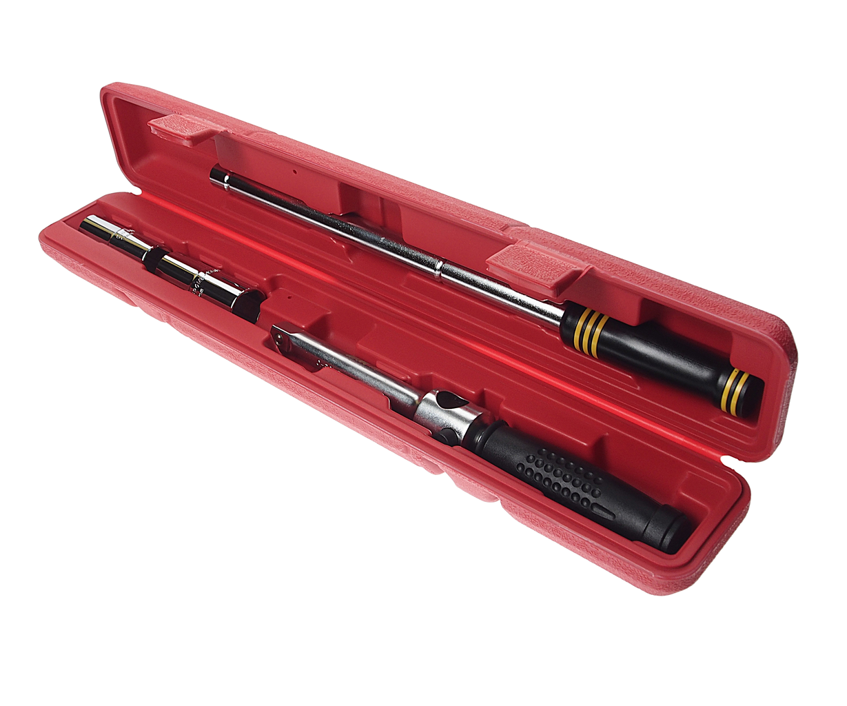 Запатентованный дизайн. Регулируемое основание позволяет выдвинуть стержень до 380 мм для увеличения значения крутящего момента или установить головку по центру для быстрого вращения. Компактное исполнение, не занимает много места в разобранном виде. Размеры головок : 17х19; 21х23