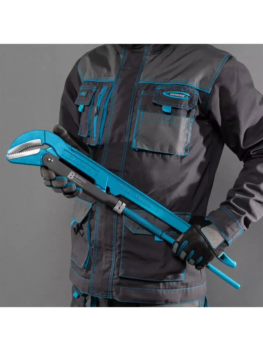 Ключ трубный рычажный, №2, 1,5", цельнокованый, CrV, тип "B" Gross 15622. Ключ газовый является незаменимым инструментом для профессионалов и любителей ремонтных работ. Он идеально подходит для затягивания и разгрузки газовых штуцеров различных диаметров благодаря наличию клещей переставных. Ключ трубный оснащен удобным рычажным механизмом, который позволяет легко и точно регулировать затяжку, не боясь надломить резьбу или сломать деталь. Клещи переставные изготовлены из прочного материала, что гарантирует его долгосрочную работоспособность и надежность. Ключ рычажный - отличный выбор для тех, кто ценят качество и функциональность инструмента.