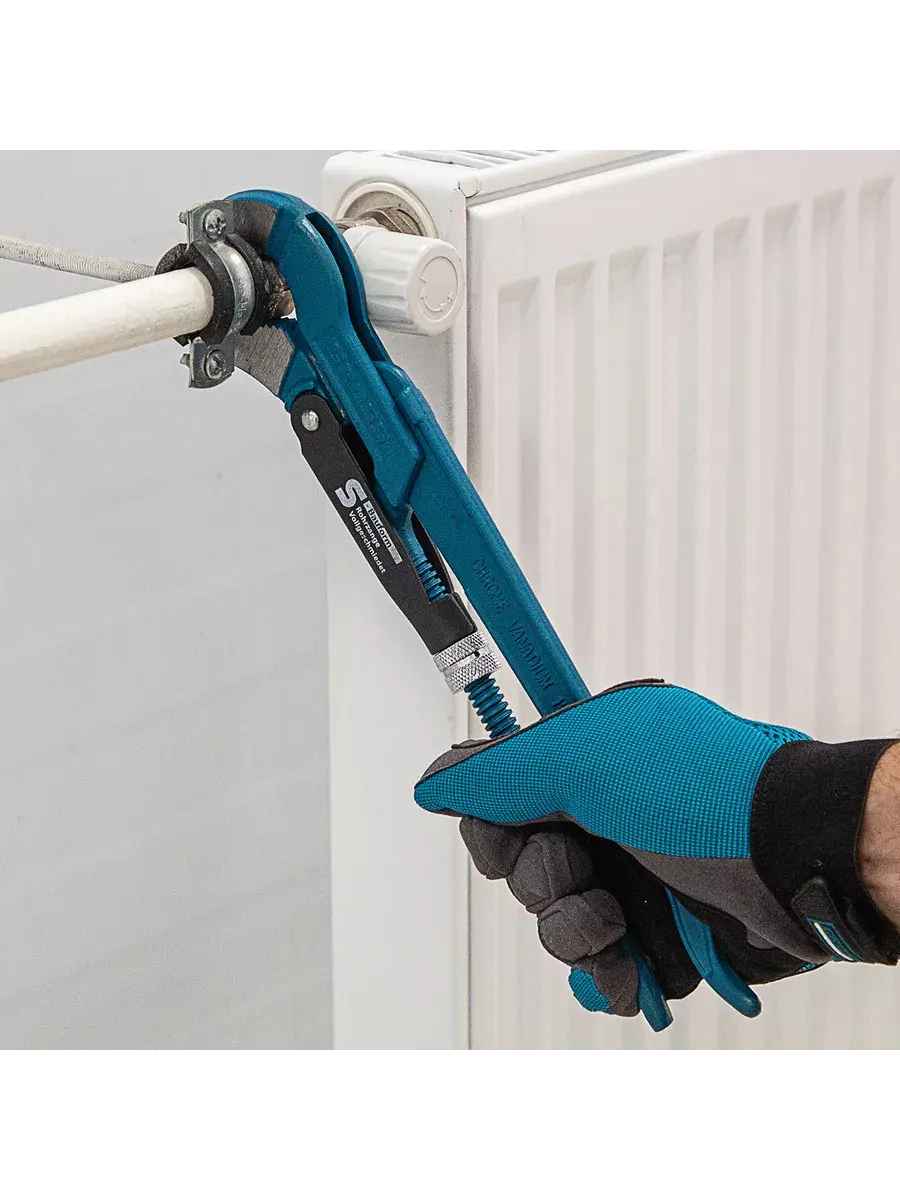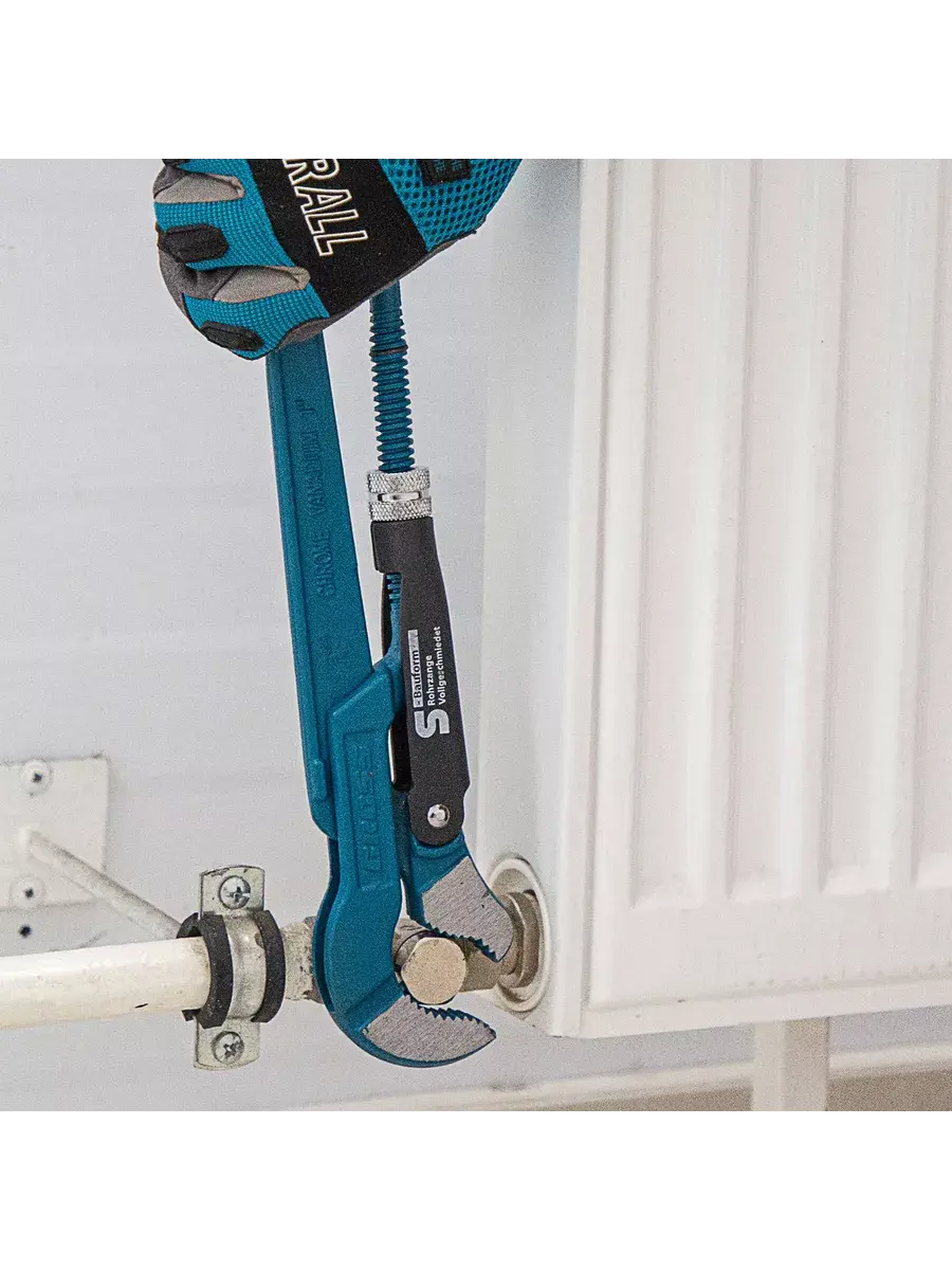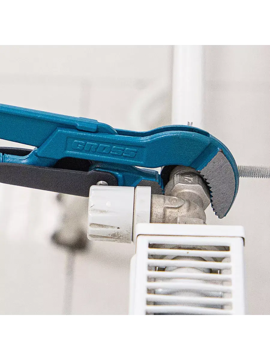 Ключ трубный рычажный, №1, 1", цельнокованый, CrV, тип - "S" Gross 15611. Ключ газовый является незаменимым инструментом для профессионалов и любителей ремонтных работ. Он идеально подходит для затягивания и разгрузки газовых штуцеров различных диаметров благодаря наличию клещей переставных. Ключ трубный оснащен удобным рычажным механизмом, который позволяет легко и точно регулировать затяжку, не боясь надломить резьбу или сломать деталь. Клещи переставные изготовлены из прочного материала, что гарантирует его долгосрочную работоспособность и надежность. Ключ рычажный - отличный выбор для тех, кто ценят качество и функциональность инструмента.