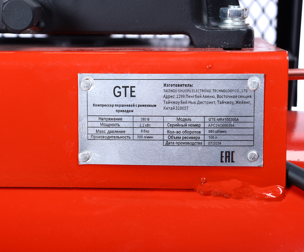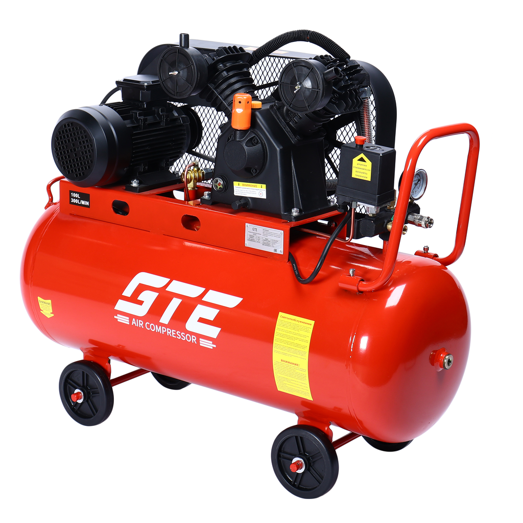 Компрессор пневматический 380В 2.2кВт 8атм. 300л/мин. ресивер-100л поршневой ременной GTE – купить за 58 000 ₽ | GPinstrument