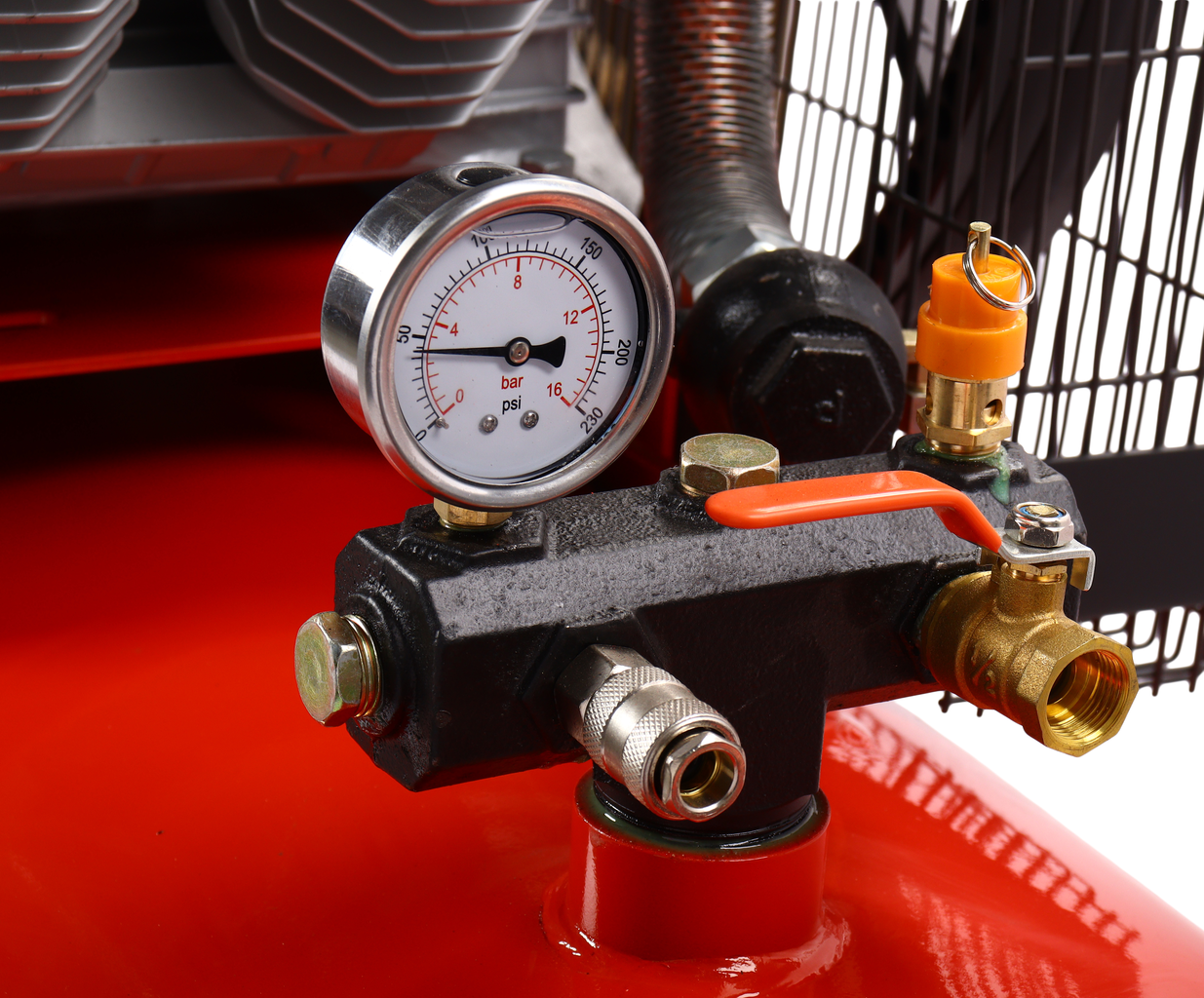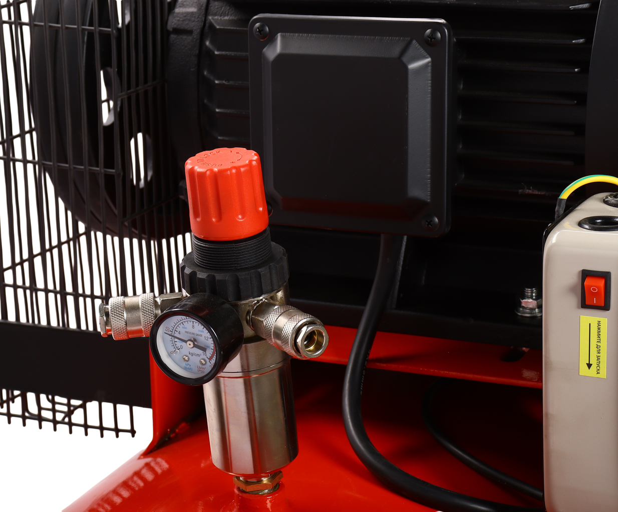 Поршневой компрессор GTE-MR45001200A с ременным приводом — надежное оборудование, предназначенное для профессионального использования в автосервисах, производственных цехах и строительных объектах, обеспечивает стабильную подачу воздуха для пневмоинструментов и других задач, требующих высокого давления. Характеристики: Напряжение: 380 В Потребляемая мощность: 7,5 кВт Рабочее давление: 12,5 бар Производительность на входе: 2000 л/мин Производительность на выходе: 1200 л/мин Объем ресивера: 500 л Скорость холостого хода: 800 об/мин Привод компрессора: ременной Количество цилиндров: 4 Особенности: Простое обслуживание — конструкция компрессора обеспечивает удобный доступ ко всем узлам, что позволяет проводить техническое обслуживание и минимизировать время простоя. Компактность — идеально подходит для гаражей, передвижек и малых цехов, занимая минимальное пространство без ущерба для функциональности. Ресивер объемом 500 литров — обеспечивает достаточный запас воздуха для многих задач, позволяя работать без частых отключений. Ременной привод — обеспечивает надежную передачу мощности и минимальный уровень шума. Продуманная конструкция — передача закрыта решетчатым кожухом, защищающим от повреждений. Блок цилиндров с множеством охлаждающих ребер для максимальной теплоотдачи и эффективного охлаждения. Плавный запуск и работа — снижают механические нагрузки на двигатель, что повышает долговечность устройства.