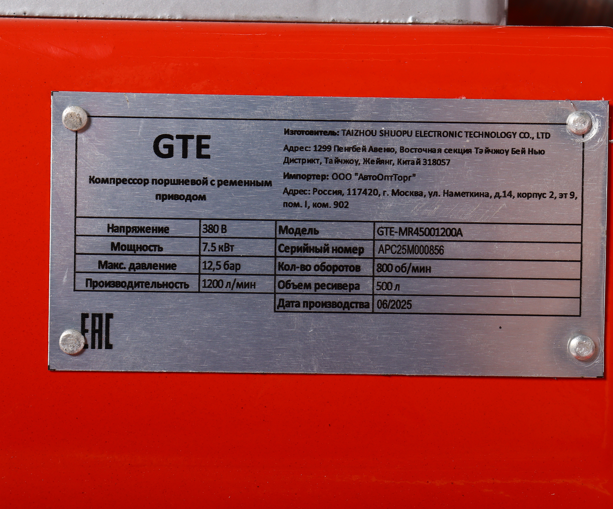Компрессор поршневой ременной 380В 1200л/мин. ресивер-500л GTE – купить за 171 950 ₽ | GPinstrument