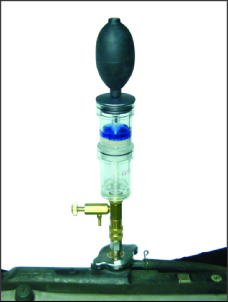 Комплектация Специальная двухкамерная колба-тестер; Жидкость для тестера утечек 250 мл. (JTC-1236L); Резервная бутылочка для жидкости 250 мл; Переходник с быстросъемным соединителем; Резиновая груша для стравливания воздуха. Описание Набор представляет собой диагностическое устройство – тестер, с помощью которого можно определить содержания выхлопных газов в охлаждающей жидкости системы охлаждения двигателя автомобиля. Наличие выхлопных газов косвенно свидетельствует о проблемах, связанных с микротрещинами в камере сгорания, или неплотной прилегающей прокладке между блоком двигателя и ГБЦ и т.п., обычно возникающих после перегрева двигателя. Проверка производится при работе двигателя на холостом ходу. Местоположение утечки определяется путем отключения одной свечи зажигания за один раз и проведением повторного испытания. Рекомендуется использовать вместе с тестером JTC-1005. Назначение Диагностика двигателей внутреннего сгорания, как с бензиновым, так и дизельным впрыском; тест на определения содержания в охлаждающей жидкости выхлопных газов. Принцип действия Отработавшие газы при проникании в систему охлаждения двигателя накапливаются в «воздушной подушке» радиатора или расширительного бачка. Тестер анализирует состав этого воздуха, и тестовая жидкость меняет цвет с голубого на желтый при наличии CO2 в воздухе для бензиновых двигателей и на зеленый при наличии CO2 в воздухе для дизельных двигателей. Обычный метод часто дает неправильный результат, так как присутствующие в воздухе частицы щелочи могут нейтрализовать эффект присутствия СО2, показывая, что утечки нет, когда она присутствует. Эти частицы абсорбируются первой камерой тестера, которая действует как фильтр, позволяя только воздуху и СО2 достигать второй — верхней камеры. Если жидкость в верхней камере меняет цвет на желтый или зеленый, это факт, свидетельствующий о наличии СО2 в антифризе.