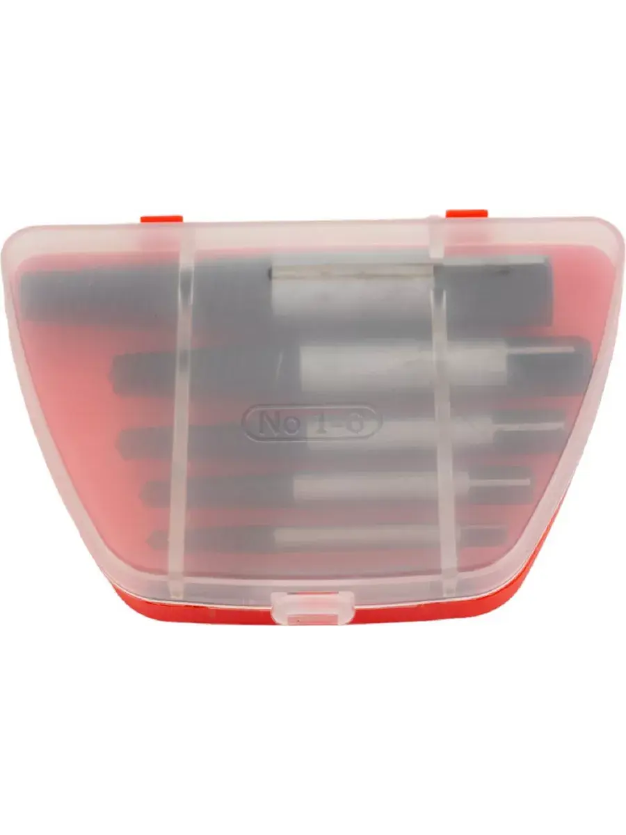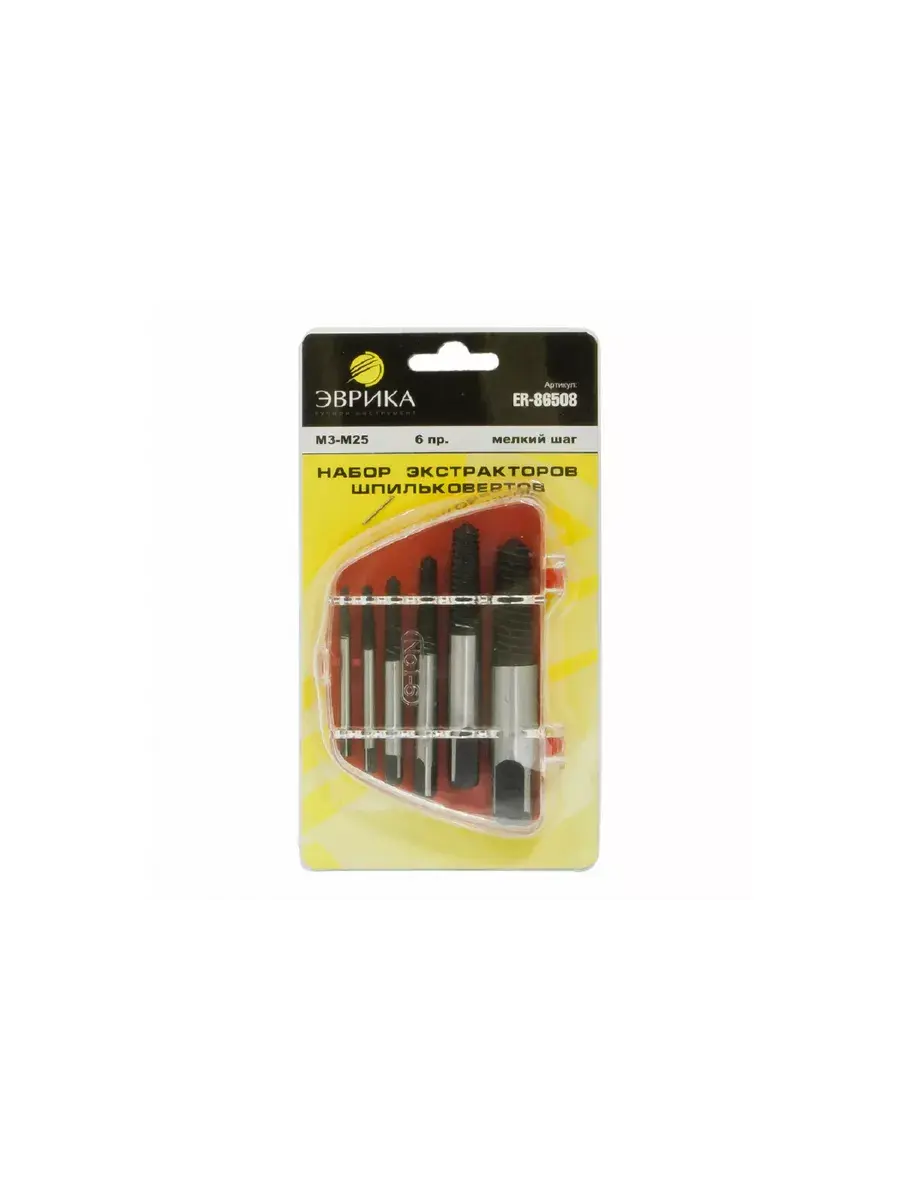 Набор экстракторов ER-86508: шпильковертов 6пр. (М3-М25; Ø:3-6мм, 6-8мм, 8-11мм, 11-14мм, 14-18мм, 18-22мм; "мелкий шаг") пластиковый кейс ЭВРИКА