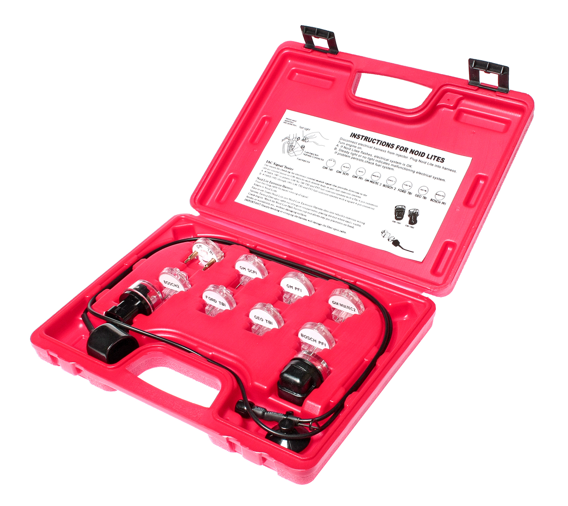 В набор входит 7 адаптеров для проверки GM PFI, Форд (Ford) TBI, GEO TBI, BOSCH PFI, GM TBI, GM SCPI, GM MULTEC2, BOSCH 2. 2 адаптера IAC для GM 1982 г.в. и позже, GM TBI и PFI, GM 1981 г.в. или позже GM 700 TBI и PFI, а также 1 оптоволоконный удлинитель. Упаковка: прочный переносной кейс. Габаритные размеры: 250/200/50 мм. (Д/Ш/В) Вес: 400 гр.