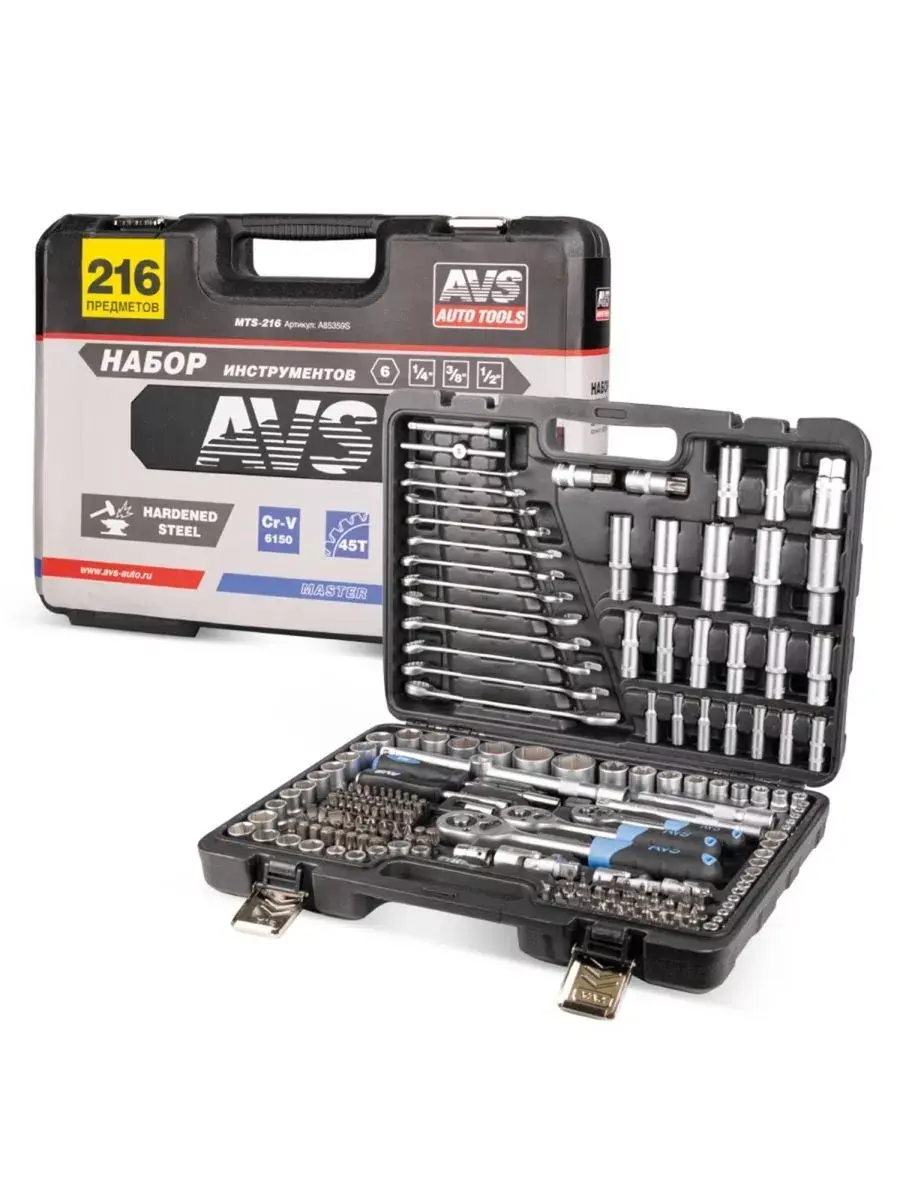 Набор инструментов 216 предметов "MASTER" AVS MTS-216. Набор инструментов — это неотъемлемый помощник как для автолюбителей, так и для мастеров по ремонту дома. Универсальный и профессиональный набор инструментов представляет собой сборку различных инструментов, необходимых для проведения работ как в автомобиле, так и в домашнем хозяйстве. Данный набор инструментов для автомобиля в чемодане идеально подходит для автолюбителей, желающих иметь все необходимое для ремонта или обслуживания своего автомобиля под рукой. В чемодане удобно хранить и транспортировать инструменты, что делает его незаменимым аксессуаром для автовладельцев. Набор инструментов для дома включает в себя широкий спектр инструментов, начиная от отверток и ключей, и заканчивая молотками и пилами. Этот набор поможет вам решить множество бытовых проблем и выполнить различные ремонтные работы в доме. Для авто также важно иметь под рукой надежный и качественный набор инструментов. Отвертки, ключи, гаечные ключи, пассатижи и другие инструменты из набора помогут вам провести мелкий ремонт или обслуживание вашего автомобиля самостоятельно, без обращения в автосервис. Профессиональный набор инструментов отличается высоким качеством материалов и прочностью инструментов. Он предназначен для использования мастерами и специалистами, которым необходимы надежные и эффективные инструменты для выполнения сложных работ. В итоге, набор инструментов — это незаменимый помощник как для автолюбителей, так и для профессиональных мастеров. Удобство хранения в чемодане делает его компактным и портативным, а широкий выбор инструментов позволяет решить множество задач как в автомобиле, так и в доме. Неотъемлемый атрибут для всех, кто ценит качество и удобство в работе.