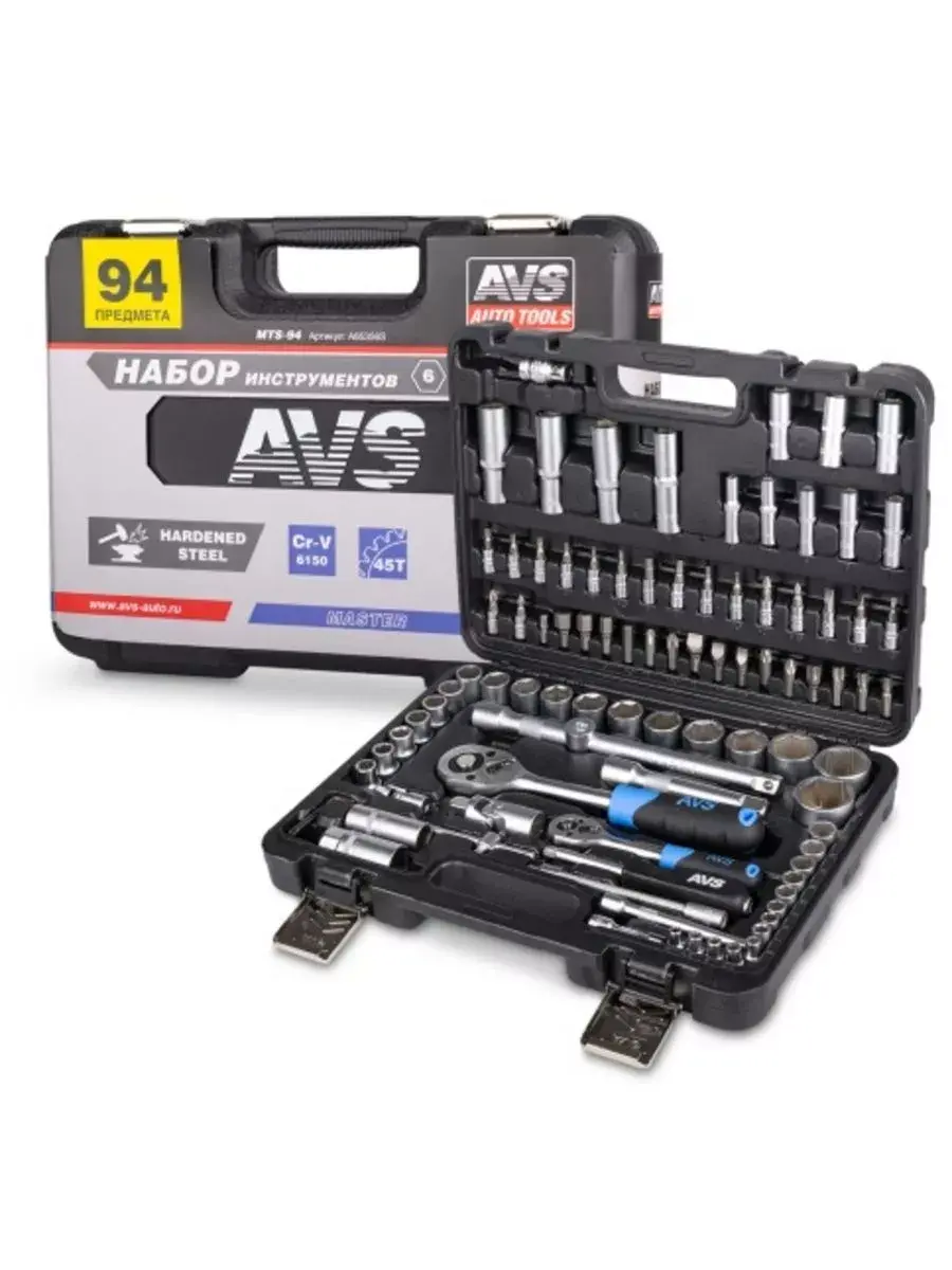 Набор инструментов 94 предмета "MASTER" AVS MTS-94. Набор инструментов — это неотъемлемый помощник как для автолюбителей, так и для мастеров по ремонту дома. Универсальный и профессиональный набор инструментов представляет собой сборку различных инструментов, необходимых для проведения работ как в автомобиле, так и в домашнем хозяйстве. Данный набор инструментов для автомобиля в чемодане идеально подходит для автолюбителей, желающих иметь все необходимое для ремонта или обслуживания своего автомобиля под рукой. В чемодане удобно хранить и транспортировать инструменты, что делает его незаменимым аксессуаром для автовладельцев. Набор инструментов для дома включает в себя широкий спектр инструментов, начиная от отверток и ключей, и заканчивая молотками и пилами. Этот набор поможет вам решить множество бытовых проблем и выполнить различные ремонтные работы в доме. Для авто также важно иметь под рукой надежный и качественный набор инструментов. Отвертки, ключи, гаечные ключи, пассатижи и другие инструменты из набора помогут вам провести мелкий ремонт или обслуживание вашего автомобиля самостоятельно, без обращения в автосервис. Профессиональный набор инструментов отличается высоким качеством материалов и прочностью инструментов. Он предназначен для использования мастерами и специалистами, которым необходимы надежные и эффективные инструменты для выполнения сложных работ. В итоге, набор инструментов — это незаменимый помощник как для автолюбителей, так и для профессиональных мастеров. Удобство хранения в чемодане делает его компактным и портативным, а широкий выбор инструментов позволяет решить множество задач как в автомобиле, так и в доме. Неотъемлемый атрибут для всех, кто ценит качество и удобство в работе.