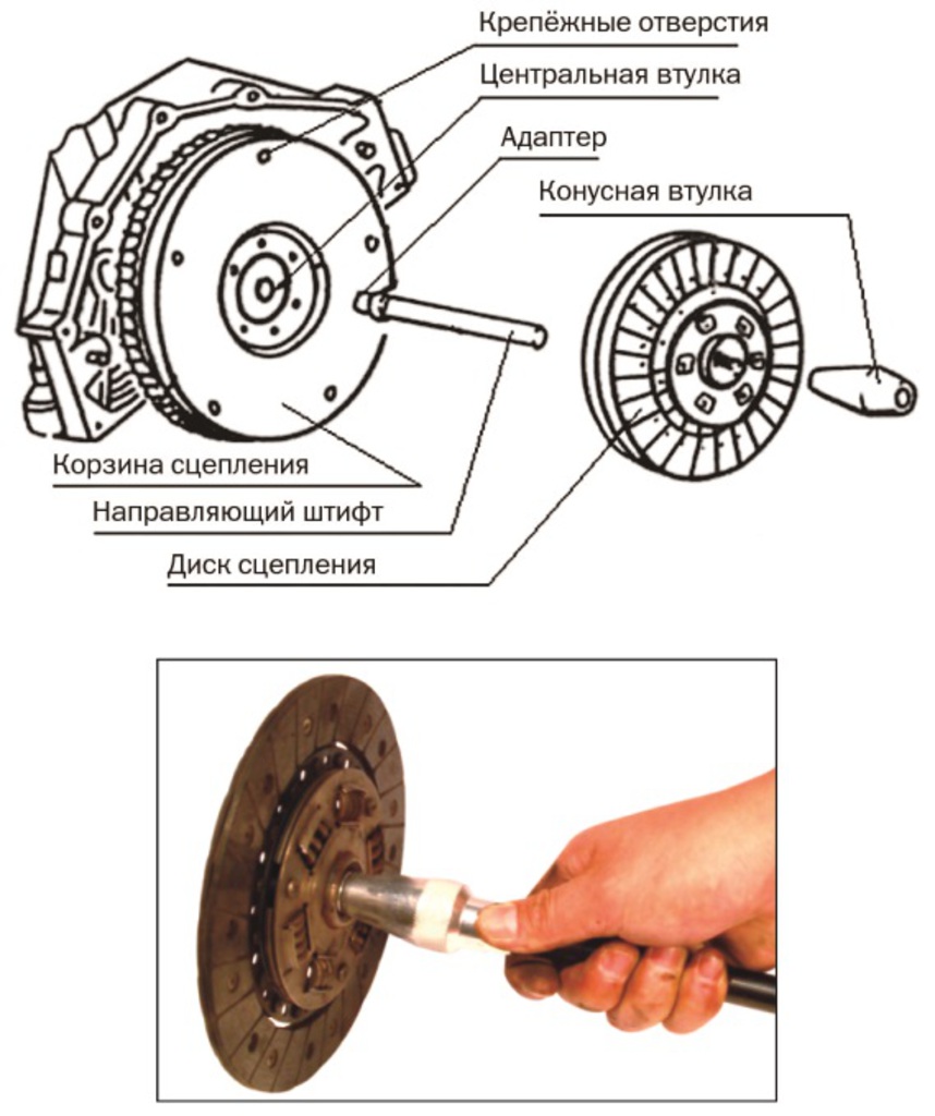 Комплектация Направляющий штифт – 1 шт. Конусная втулка – 1 шт. Адаптеры – 8 шт. Описание Применяется для центрирования дисков сцепления на большинстве легковых и легких грузовых автомобилях, а также для тракторов. Обеспечивает аккуратную установку диска сцепления цанговым захватом в направляющую втулку или подшипник. Размеры: 8 адаптеров размерами от 11 мм до 24,9 мм. Технические характеристики Направляющий штифт Общая длина 233 мм. Длина штифта без резьбы 220 мм. Диаметр штифта 16 мм. Диаметр резьбы 9 мм. Длина резьбы 13 мм. Адаптеры 11 мм, 12 мм, 15 мм, 17 мм, 18.8 мм, 19.5 мм, 21.9 мм, 24.9 мм. Конусная втулка Общая длина 82 мм. Диаметр (А) 180 мм. Диаметр (В) 210 мм. Порядок работы Выберите адаптер, наиболее соответствующий центральной втулке. Закрутите его на направляющий штифт. Вставьте собранный штифт в центральную втулку. Установите диск сцепления на штифт и закрепите на конусной втулке. Переместите собранное сцепление к маховику и отцентрируйте по болтовым отверстиям. Наживите все крепёжные болты. Закручивайте болты постепенно и поочерёдно, согласно заводской спецификации, чтобы максимально избежать несоосность.