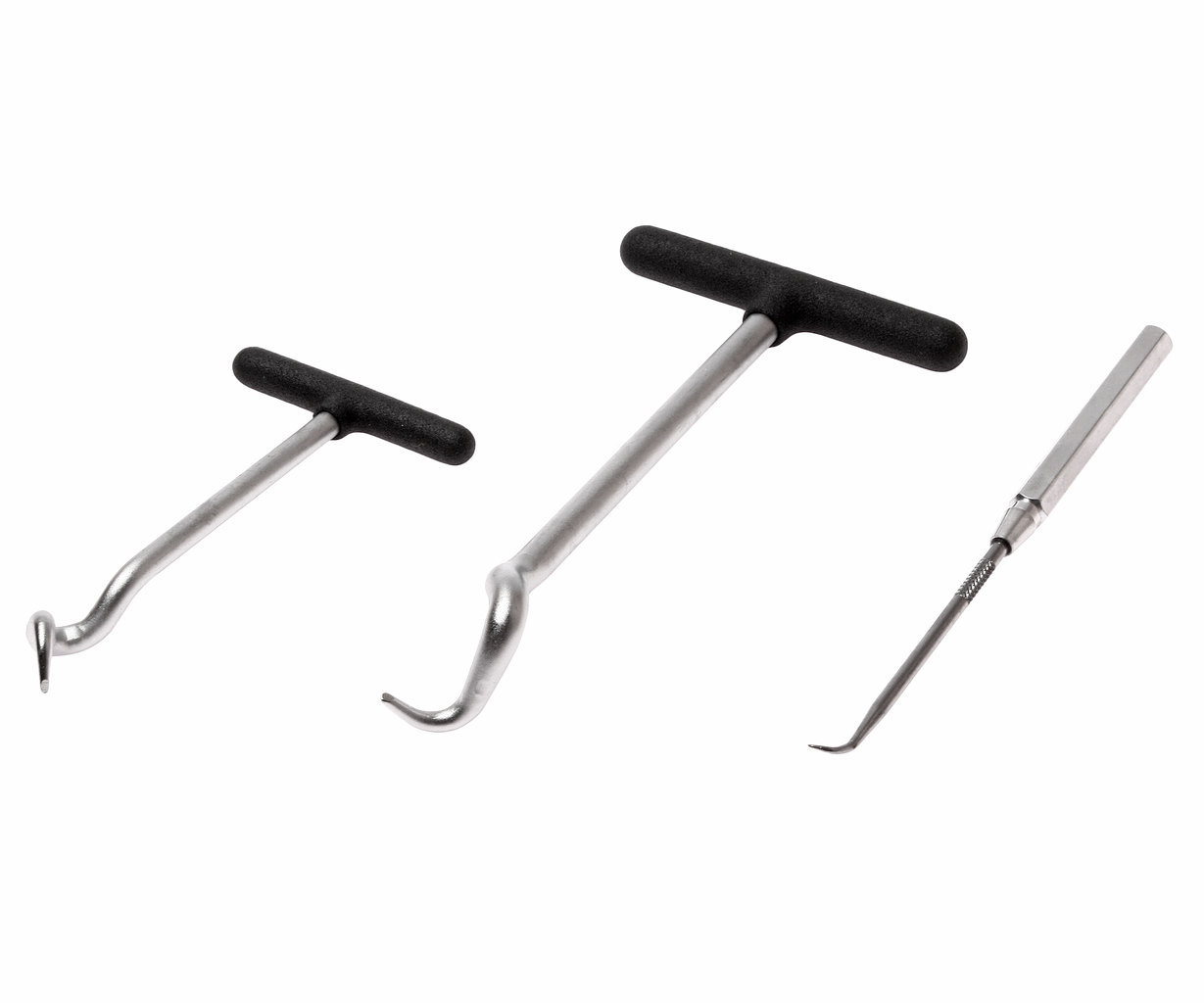 Позволяет быстро и без особых усилий снимать уплотнительные кольца или сальники различных типов. Особый угол крюка обеспечивает более эффективную работу по извлечению сальников. В комплекте 3 крюка различной длины и формы для различных видов работ. Способ применения: сальник зацепить крюком и потянуть. Длина: 117/165/150 мм. Количество в оптовой упаковке: 40 шт. Габаритные размеры: 235/160/30 мм. (Д/Ш/В) Вес: 220 гр.