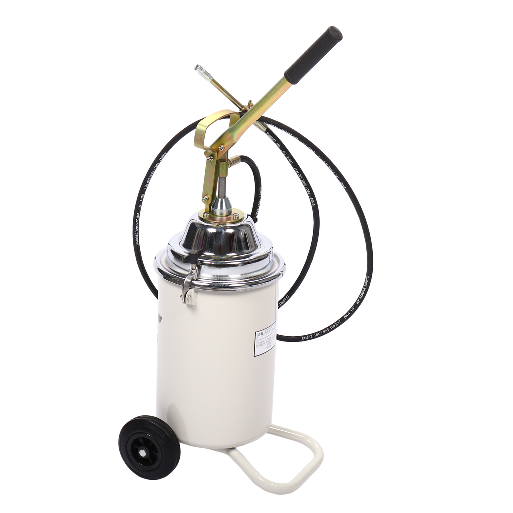 Установка на колесах для подачи консистентных смазок (солидолонагнетатель) с ручным приводом. Позволяет быстро смазать под высоким давлением узлы любого автомобиля или механизма.