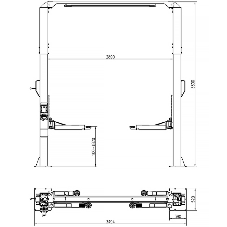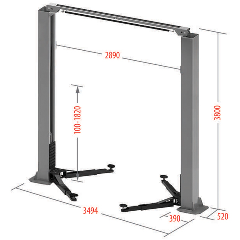 Подъемник электрогидравлический 4.5т 100-1820мм 2-х стоечный 380В верх. синхрон.(механ. с 1кол) GTE – купить за 242 980 ₽ | GPinstrument