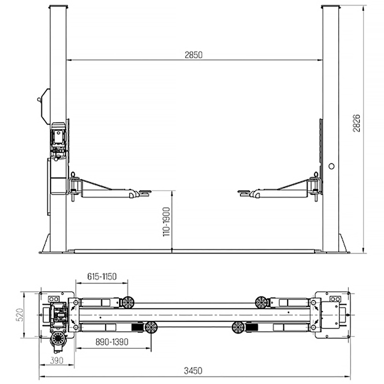 Подъемник электрогидравлический 4т 110-1900мм 2-х стоечный 380В ниж.синхрон. (руч. спуск) GTE – купить за 220 650 ₽ | GPinstrument