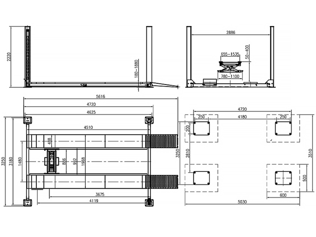 Подъемник электрогидравлический 4т 180-1700мм 4-х стоечный 380В для сход-развала с траверсой 2т GTE – купить за 371 040 ₽ | GPinstrument