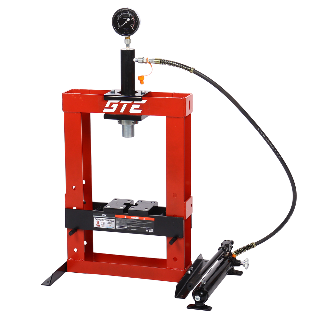 Пресс GTE-HPR13010 представляет собой компактное и эффективное в эксплуатации приспособление для ремонтных работ. Модель находит применение в сфере автосервиса. Настольная конструкция не нуждается в сложном техническом обслуживании. Используется при следующих ремонтно-монтажных работах: выпрессовки подшипников и втулок, правки валов, осей, профилей, для прессования заготовок.