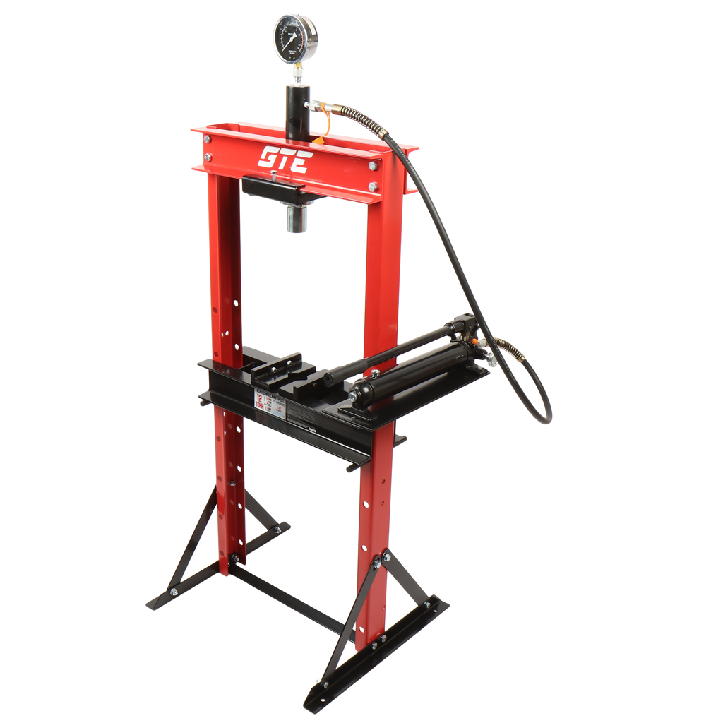 Гидравлический напольный пресс GTE с ручным приводом GTE-HPR13012S обеспечивает усилие прижима 12 тонн. Используется в автосервисах, СТО и производстве для запрессовки деталей различных размеров, выпрессовки втулок, снятия и установки подшипников, гибки металла.