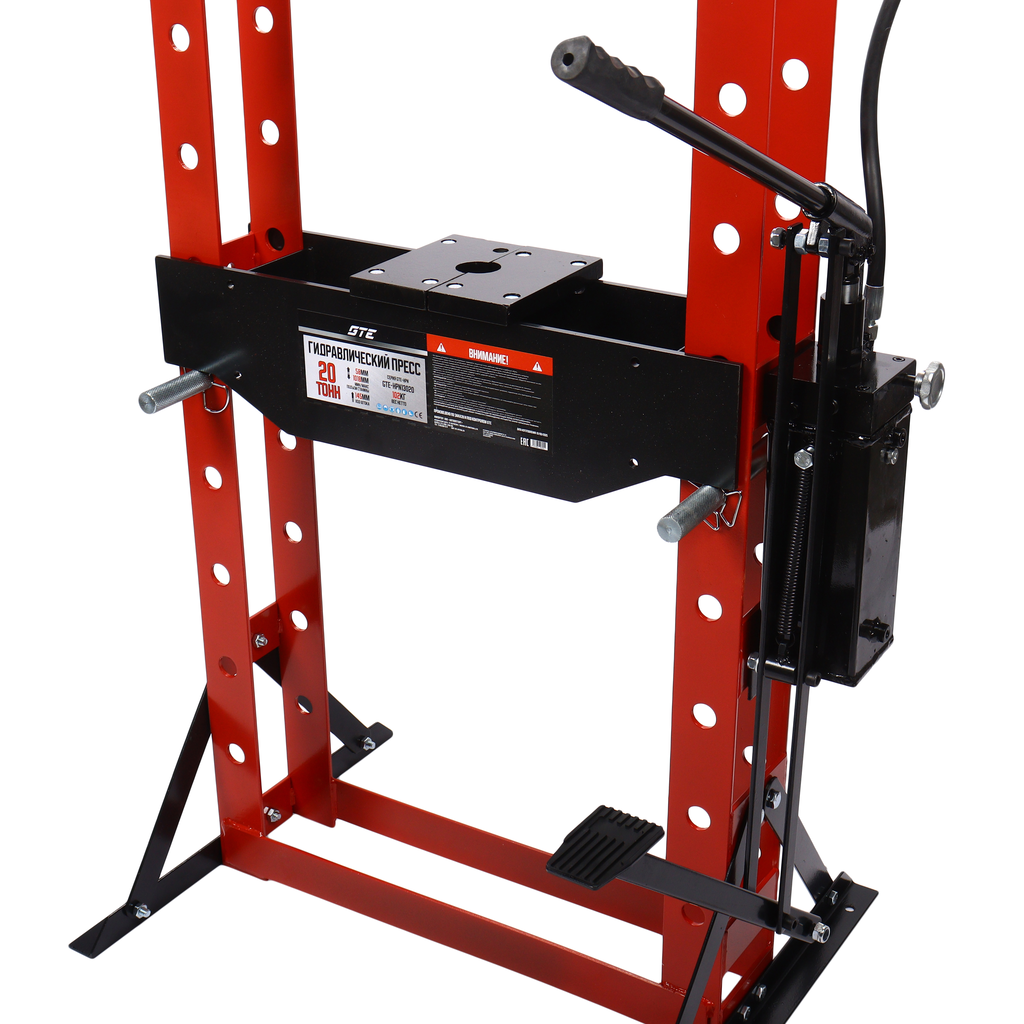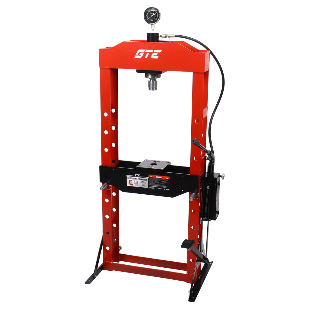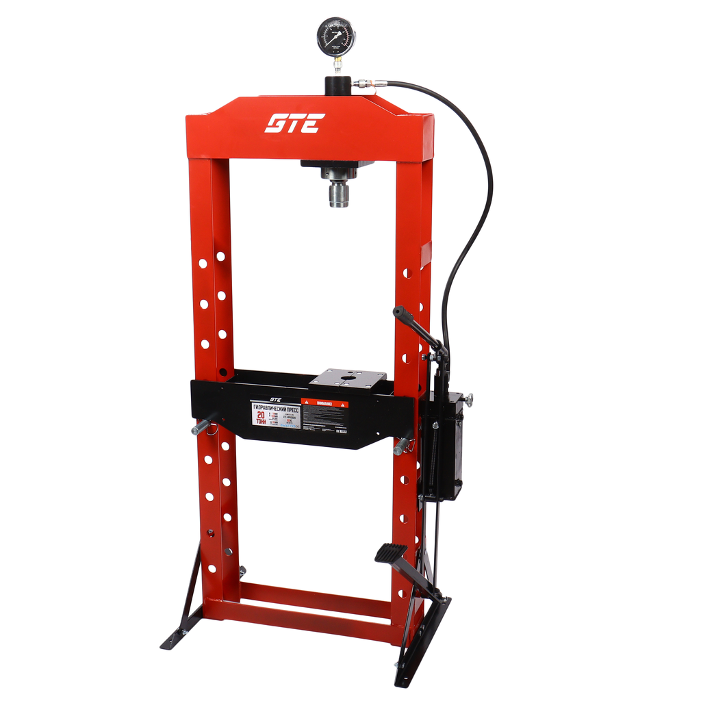 Гидравлический напольный пресс GTE с ручным и ножным приводом GTE-HPN13020 обеспечивает усилие прижима 20 тонн. Используется в автосервисах, СТО и производстве для запрессовки деталей различных размеров, выпрессовки втулок, снятия и установки подшипников, гибки металла.