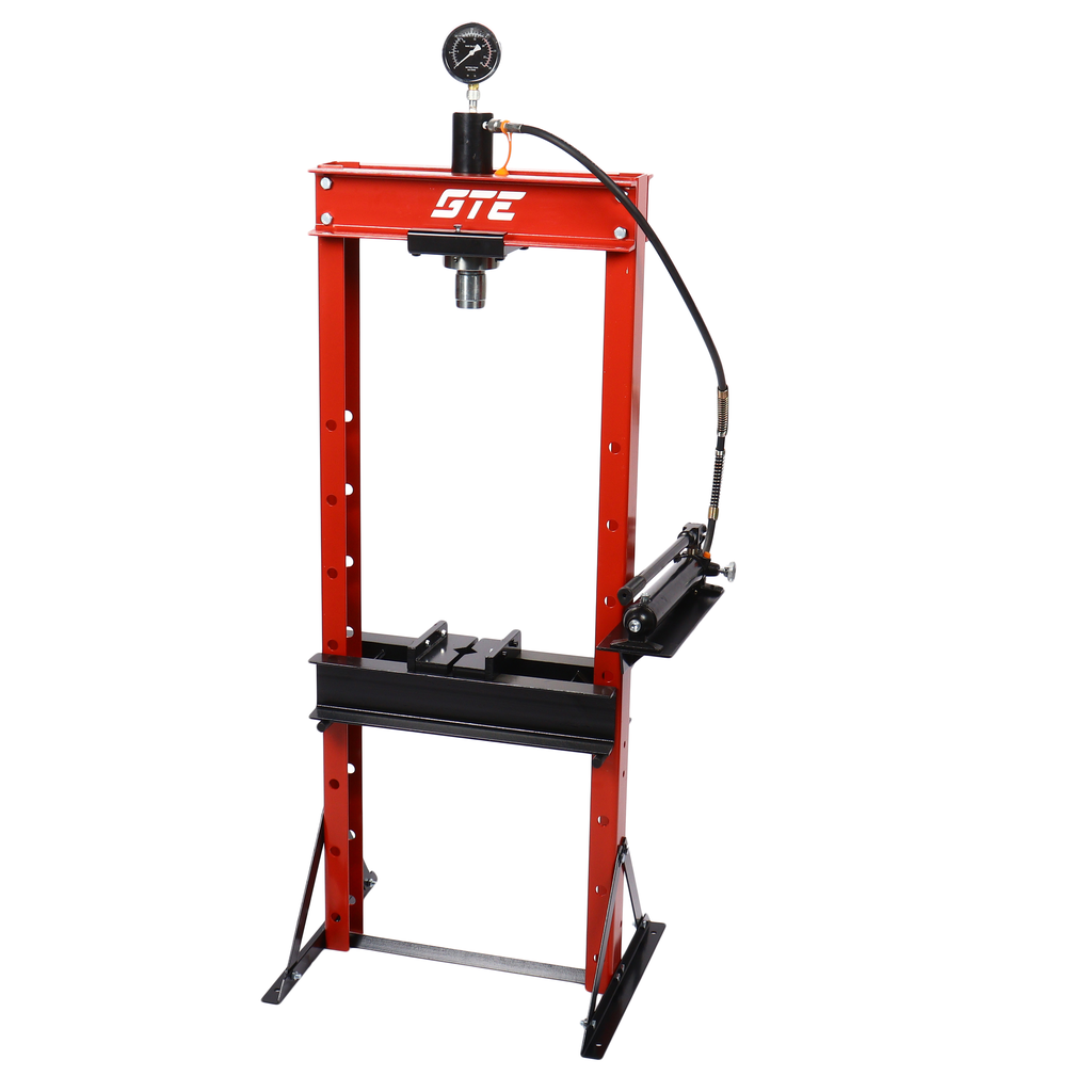 Гидравлический напольный пресс GTE с ручным приводом GTE-HPR13020S обеспечивает усилие прижима 20 тонн. Используется в автосервисах, СТО и производстве для запрессовки деталей различных размеров, выпрессовки втулок, снятия и установки подшипников, гибки металла.