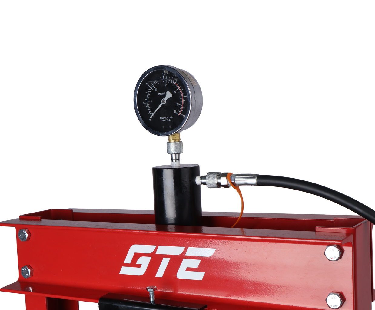 Насос и цилиндр пресса соединены прочным шлангом.