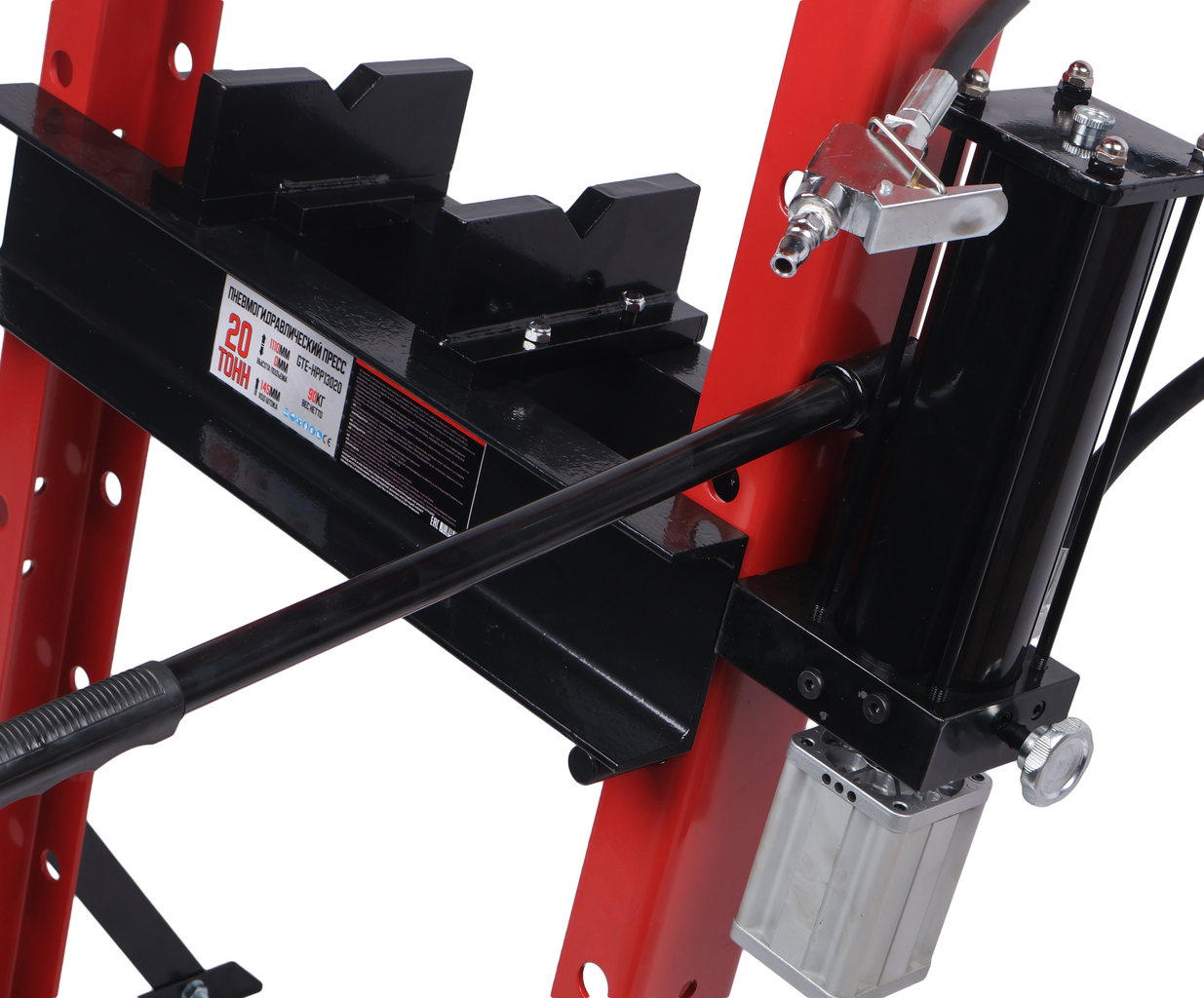 Профессиональный пневмогидравлический пресс GTE-HPP13030 с усилием 20 тонн предназначен для выпрессовки, запрессовки и других операций с деталями в автосервисах, СТО и на промышленных объектах. Станок оснащен ручным гидравлическим приводом и пневматическим насосом, который работает от источника сжатого воздуха, ускоряя выполнение операций.