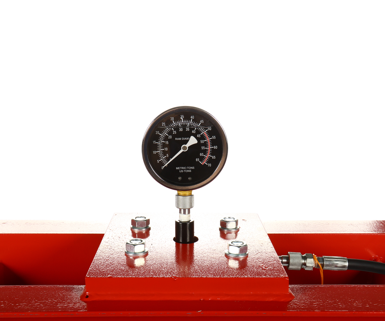 Насос и цилиндр пресса соединены прочным шлангом.