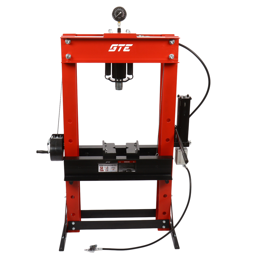 Профессиональный пневмогидравлический пресс GTE-HPP13050 с усилием 50 тонн предназначен для выпрессовки, запрессовки и других операций с деталями в автосервисах, СТО и на промышленных объектах. Пресс оснащен ручным гидравлическим приводом и пневматическим насосом, который работает от источника сжатого воздуха, ускоряя выполнение операций.