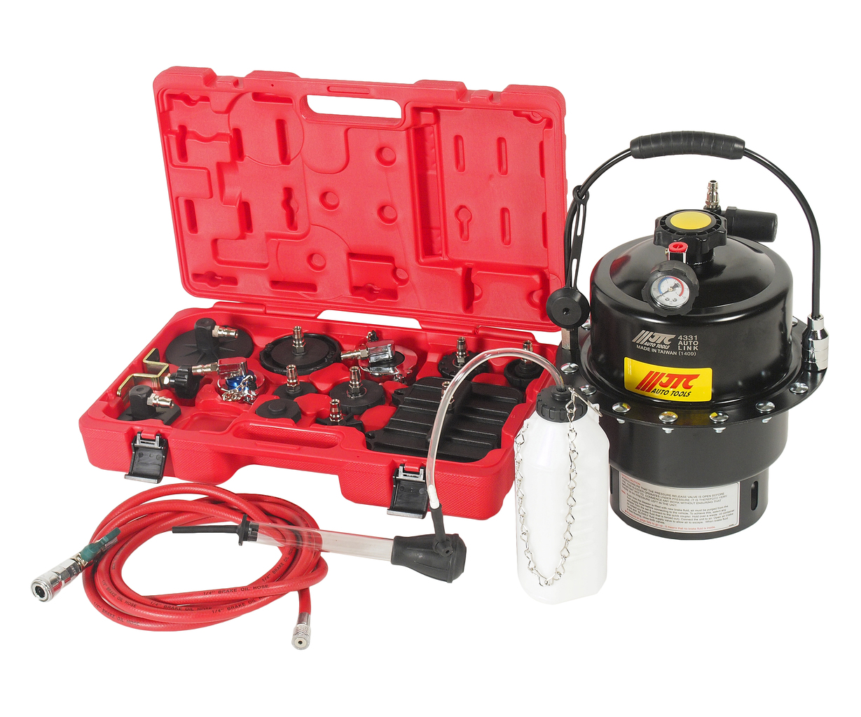 Позволяет без утечек и других традиционных ошибок заменять тормозную жидкость. Комплект специальных адаптеров для различных тормозных цилиндров предотвращает утечки.