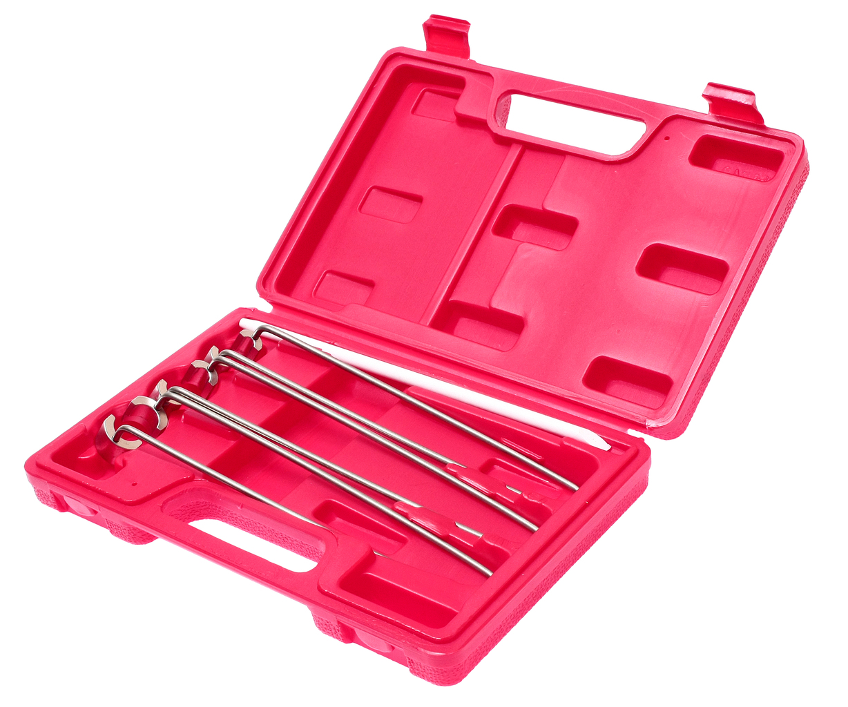 Комплектация Приспособления для снятия/установки сухарей   –   3 шт. Магнит на гибком держателе для извлечения сухарей – 1 шт. Описание Магнитные щипцы предназначены для упрощенной посадки сухаря в стопорную канавку на штоке клапана. Легко проникают в клапанный колодец для извлечения/установки замков клапанной пружины. Извлекают мелкие детали из любой углубленной или ограниченной области в двигателе.