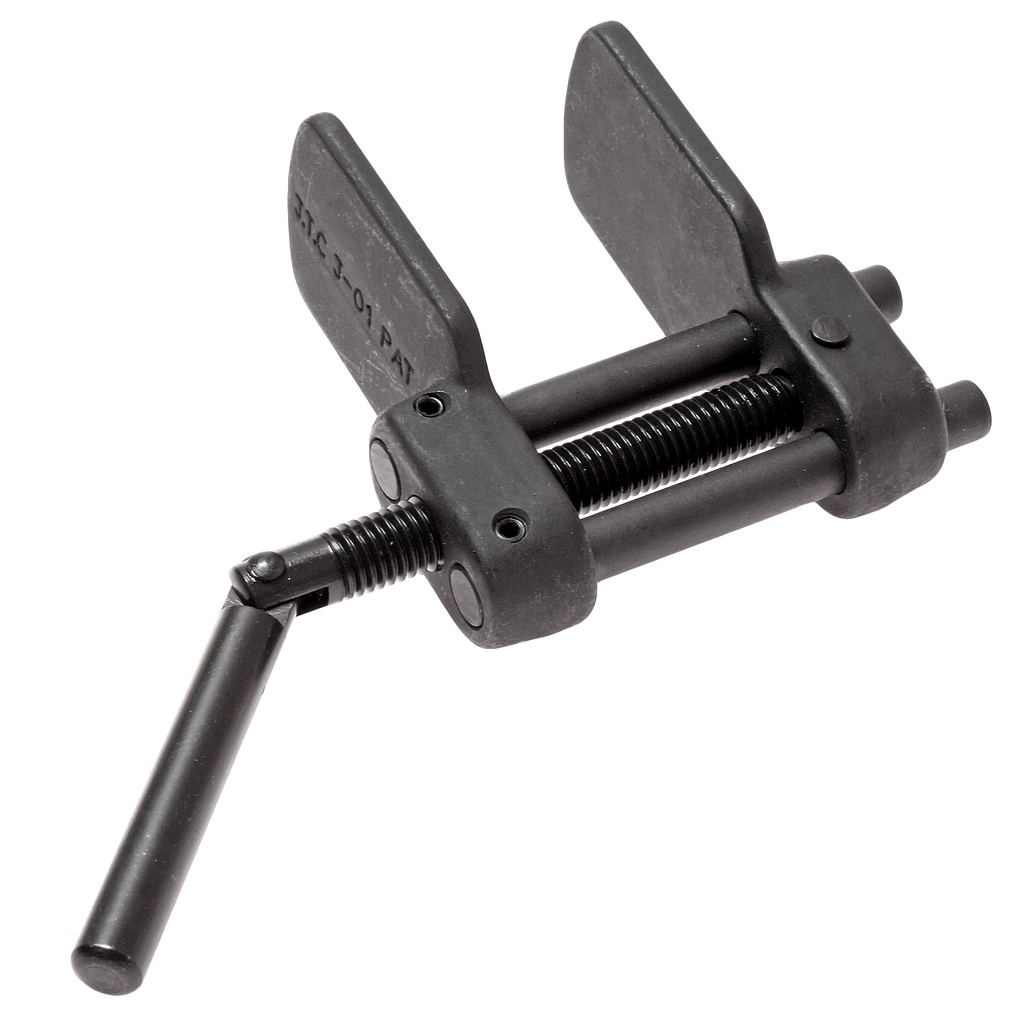 Инструмент вставляют в суппорт тормоза, чтобы раздвинуть поршни тормозных цилиндров для дальнейшей установки новых тормозных колодок.
