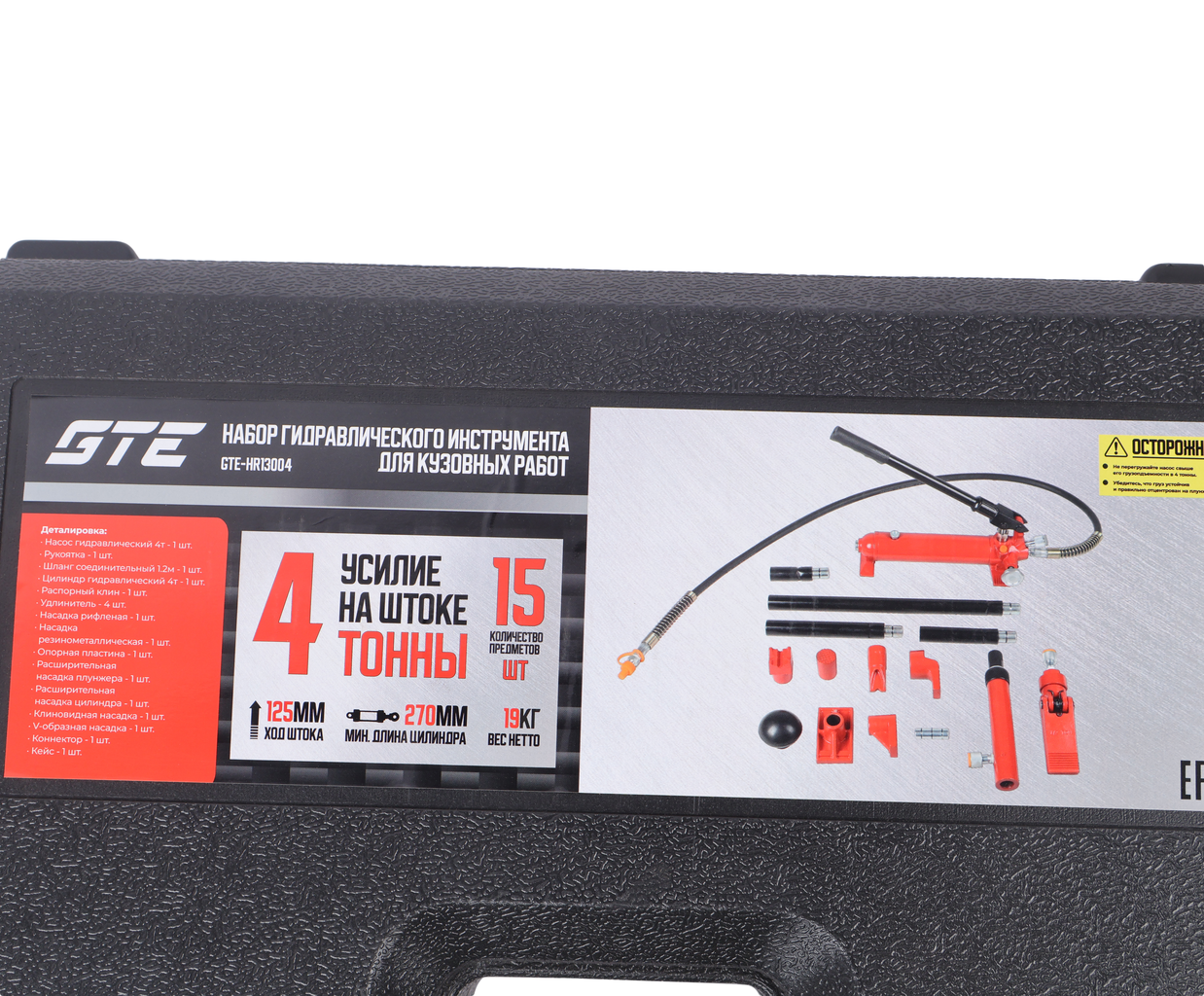 Набор гидравлических растяжек для кузовного ремонта GTE-HR13004 предназначен для проведения рихтовочных и кузовных работ, таких как восстановления геометрии больших участков и целых конструкций, главным образом проемов дверей, окон, капота и багажника. В набор входит: гидравлический насос, цилиндр, удлинители и фигурные насадки.