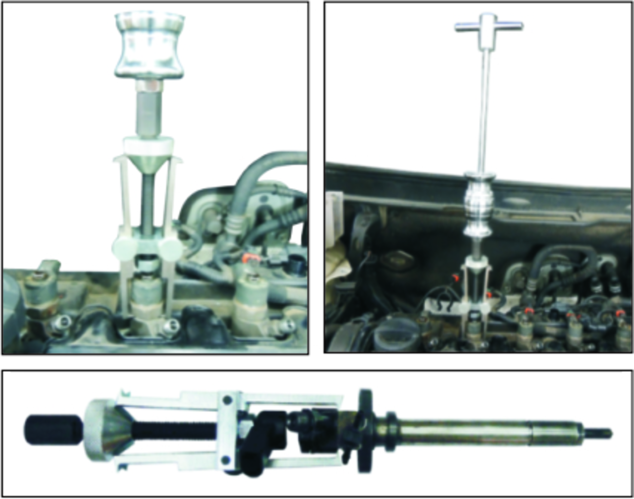 Захваты съемника регулируются, что позволяет работать под различными углами с различными типоразмерами форсунок.