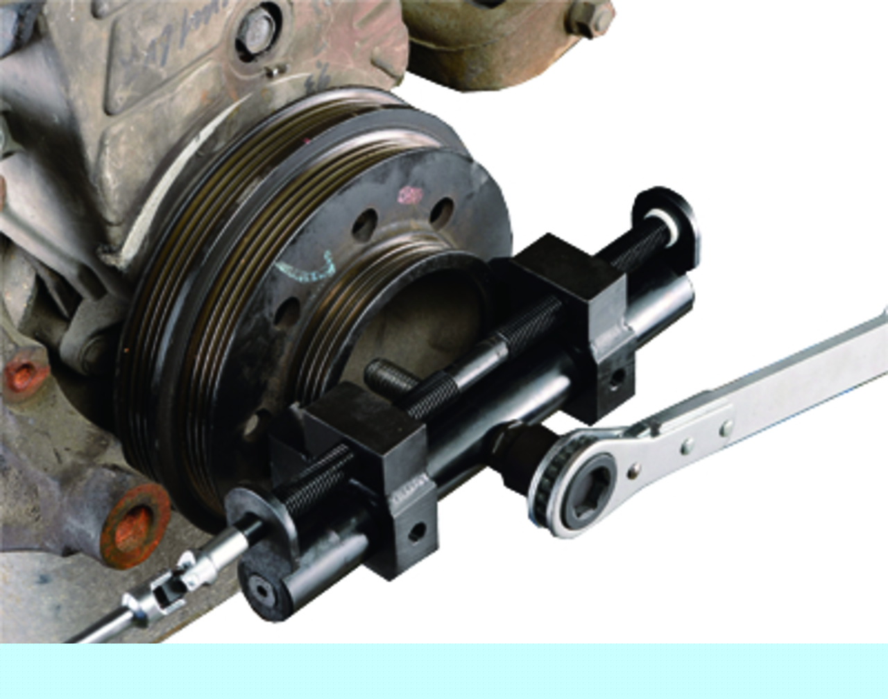 Съемник Комплектация Съемник шкивов. Описание Применяется для шкивов коленвала, генератора, кондиционера и водяного насоса. Применение Максимальный диаметр: 153 мм.