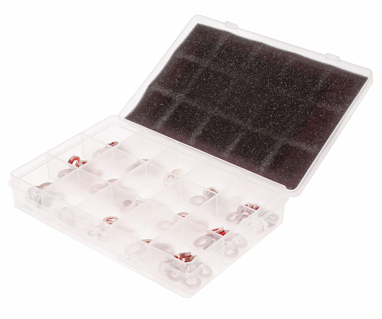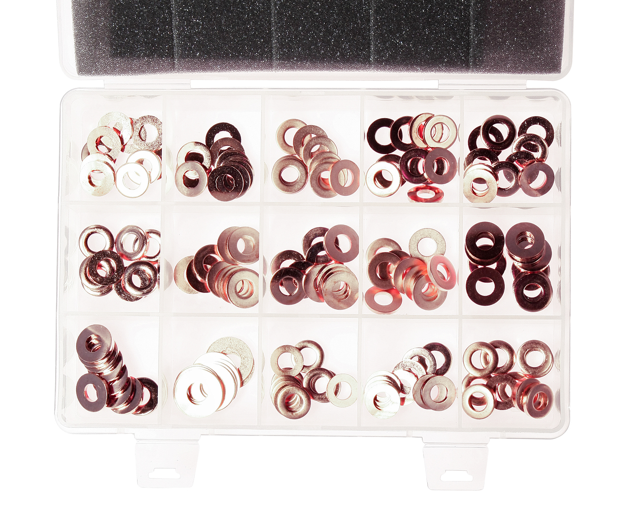Описание Универсальные медные шайбы 15-ти различных диаметров подходят для любых форсунок инжекторной системы. Размеры: 13.85x7.3x1.4 - 10 шт.; 14.6x7.5x1.3 - 10 шт.; 14.6x7.5x3 - 10 шт.; 15x7x2 - 10 шт.; 15x7.5x1 - 10 шт.; 15x7.5x1.5 - 10 шт.; 15x7.5x2 - 10 шт.; 15x7.5x2.5 - 10 шт.; 15x7.5x3 - 10 шт.; 15.5x7.5x2 - 10 шт.; 16x7.5x1.5 - 10 шт.; 16x7.5x1.7 - 10 шт.; 16x7.5x2 - 10 шт.; 16.4x7.4x2 - 10 шт.; 20x9.4x09 - 10 шт. Всего 150 ед., по 10 ед. каждого размера. Упаковка: прочный переносной кейс. Габаритные размеры: 210/155/45 мм. (Д/Ш/В) Вес: 595 гр.
