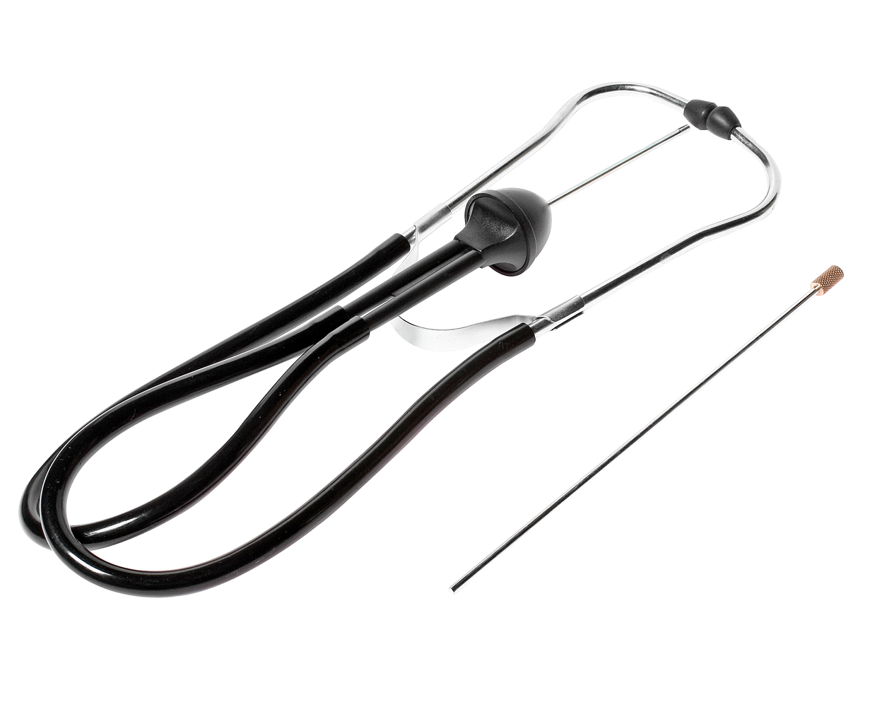 Стетоскоп Используется для точного и быстрого определения нахождения шумов в двигателе. Помогает определить неисправности работающего двигателя путем его прослушивания и выявления посторонних шумов. Имеет ударопрочную рукоять. Количество в оптовой упаковке: 20 шт. и 40 шт. Габаритные размеры: 450/130/30 мм. (Д/Ш/В) Вес: 220 гр.