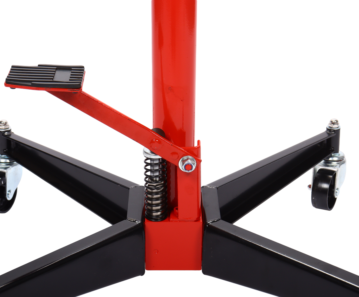 Благодаря компактной конструкции и четырем колесам с плавным ходом трансмиссионную стойку можно легко закатить под автомобиль и поднять на нужную высоту с помощью удобной педали.