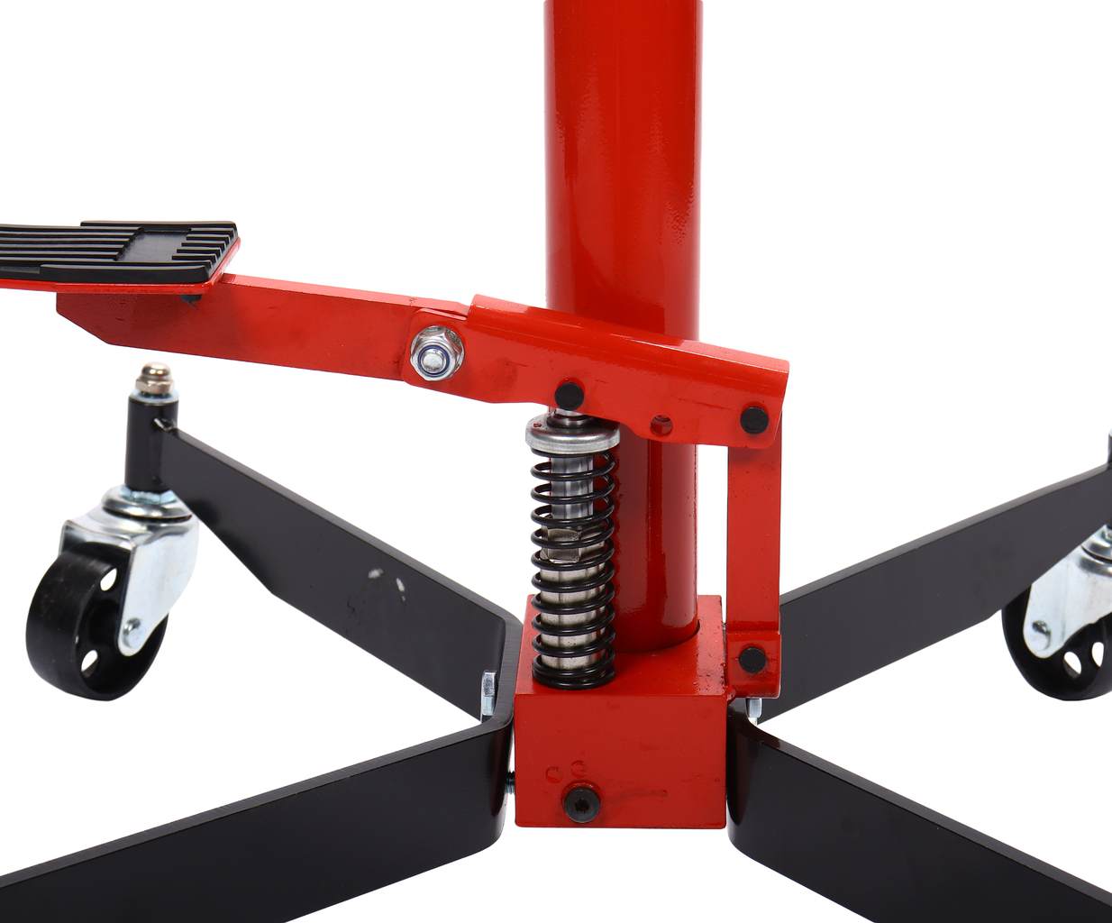 Благодаря компактной конструкции и четырем колесам с плавным ходом трансмиссионную стойку можно легко закатить под автомобиль и поднять на нужную высоту с помощью удобной педали.