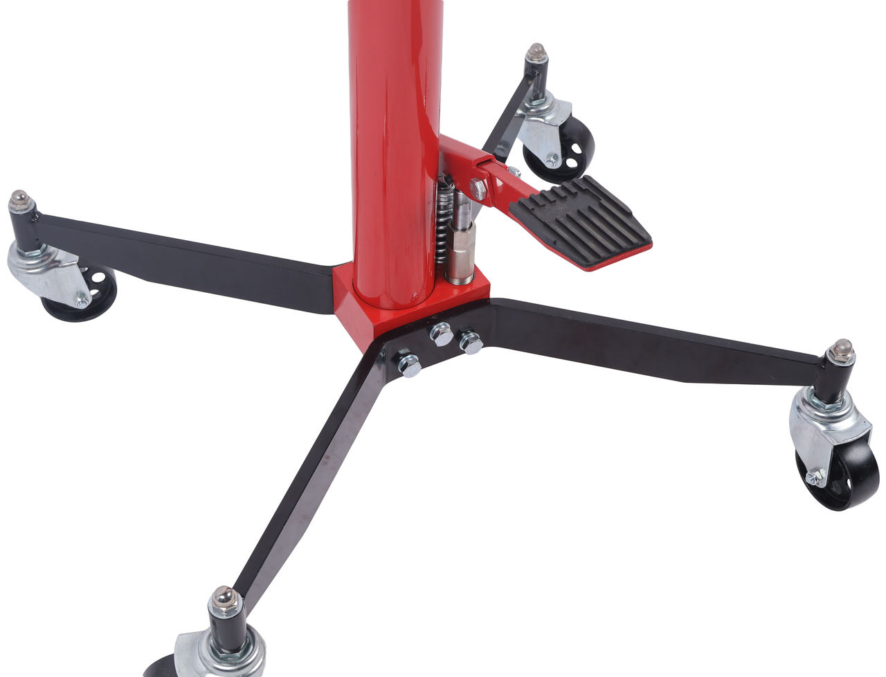 Благодаря компактной конструкции и четырем колесам с плавным ходом трансмиссионную стойку можно легко закатить под автомобиль и поднять на нужную высоту с помощью удобной педали.