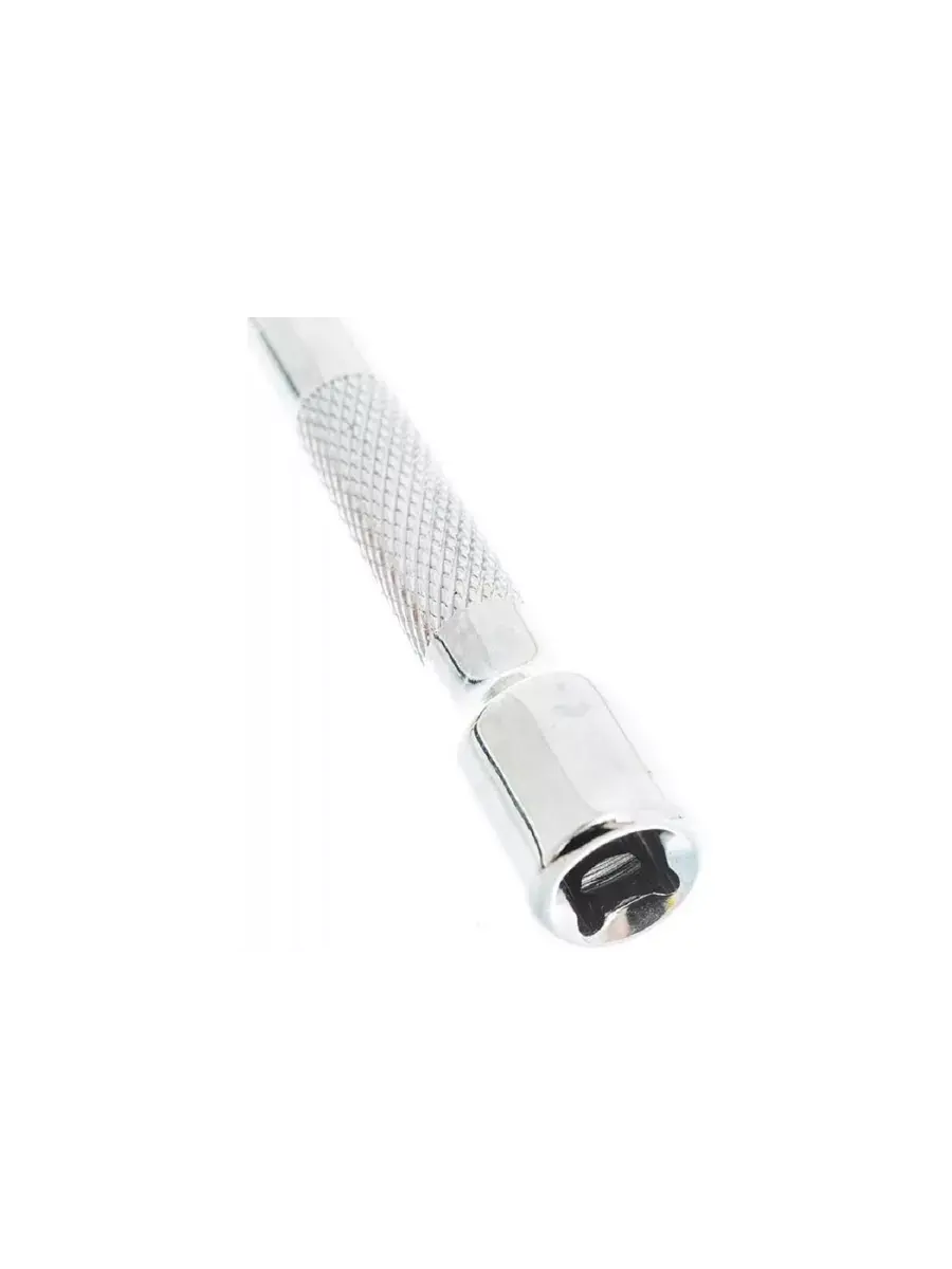 Удлинитель ER-91904 1/4" DR 150мм ЭВРИКА. Удлинитель для головок является незаменимым инструментом для профессиональных механиков и автолюбителей, которые занимаются ремонтом и обслуживанием автомобилей, мотоциклов и других технических устройств. Этот инструмент предназначен для удлинения длины торцевых головок, что позволяет легко достигать труднодоступных мест и выполнять работу с высокой точностью. Удлинитель головок обладает прочной конструкцией и изготовлен из высококачественных материалов, что обеспечивает его долговечность и надежность в эксплуатации. Благодаря этому, удлинитель торцевых головок является универсальным инструментом, который может использоваться с различными типами головок, включая шестигранные, торцевые и другие. Основное предназначение удлинителя для головок торцевых заключается в том, чтобы обеспечить доступ к труднодоступным местам, где обычные головки не могут быть использованы. Благодаря своей удлиненной конструкции, этот инструмент позволяет механикам легко достигать болтов и гаек, находящихся в глубоких углублениях или за препятствиями. Таким образом, удлинитель для торцевых головок существенно упрощает и ускоряет процесс ремонта и обслуживания техники.
