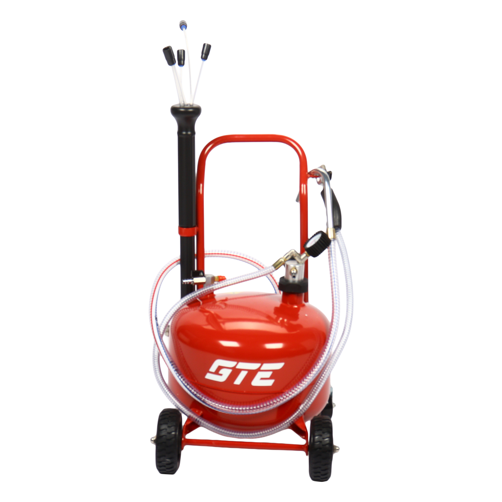 Мобильная пневматическая установка для откачки масла GTE-T14103 емкостью бака 25 литров. Подходит для быстрой замены моторного или трансмиссионного масла любого автомобиля.