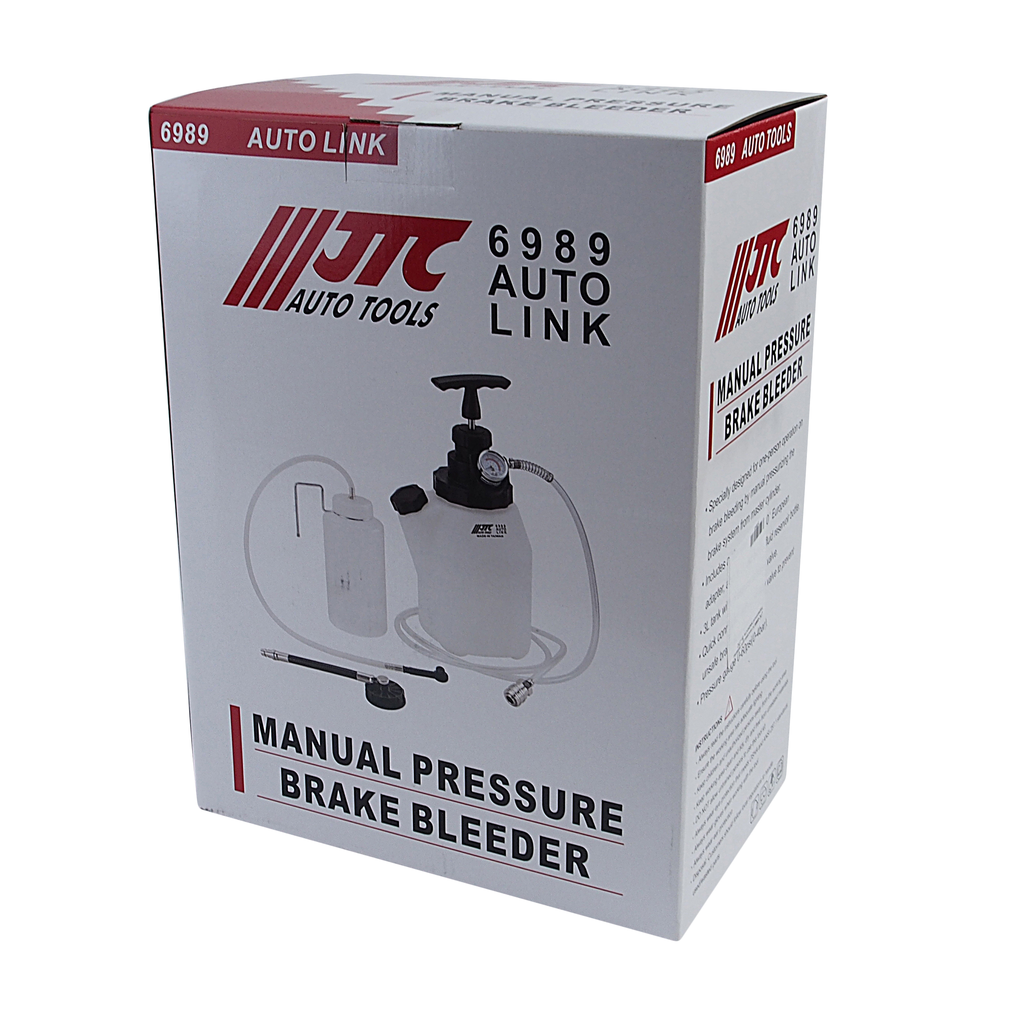 Включает стандартный европейский адаптер с шарниром на 90° и 1-литровую бачок для удаления старой тормозной жидкости.