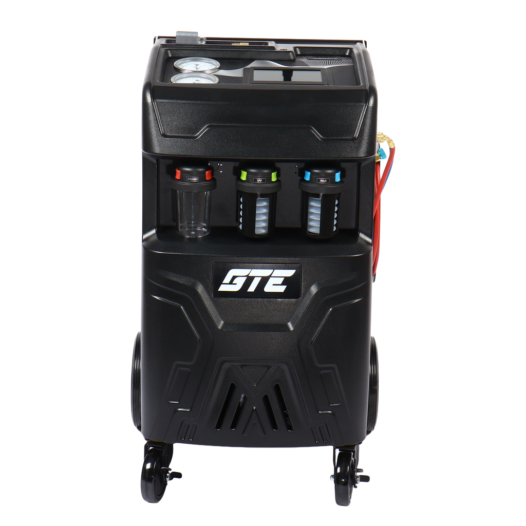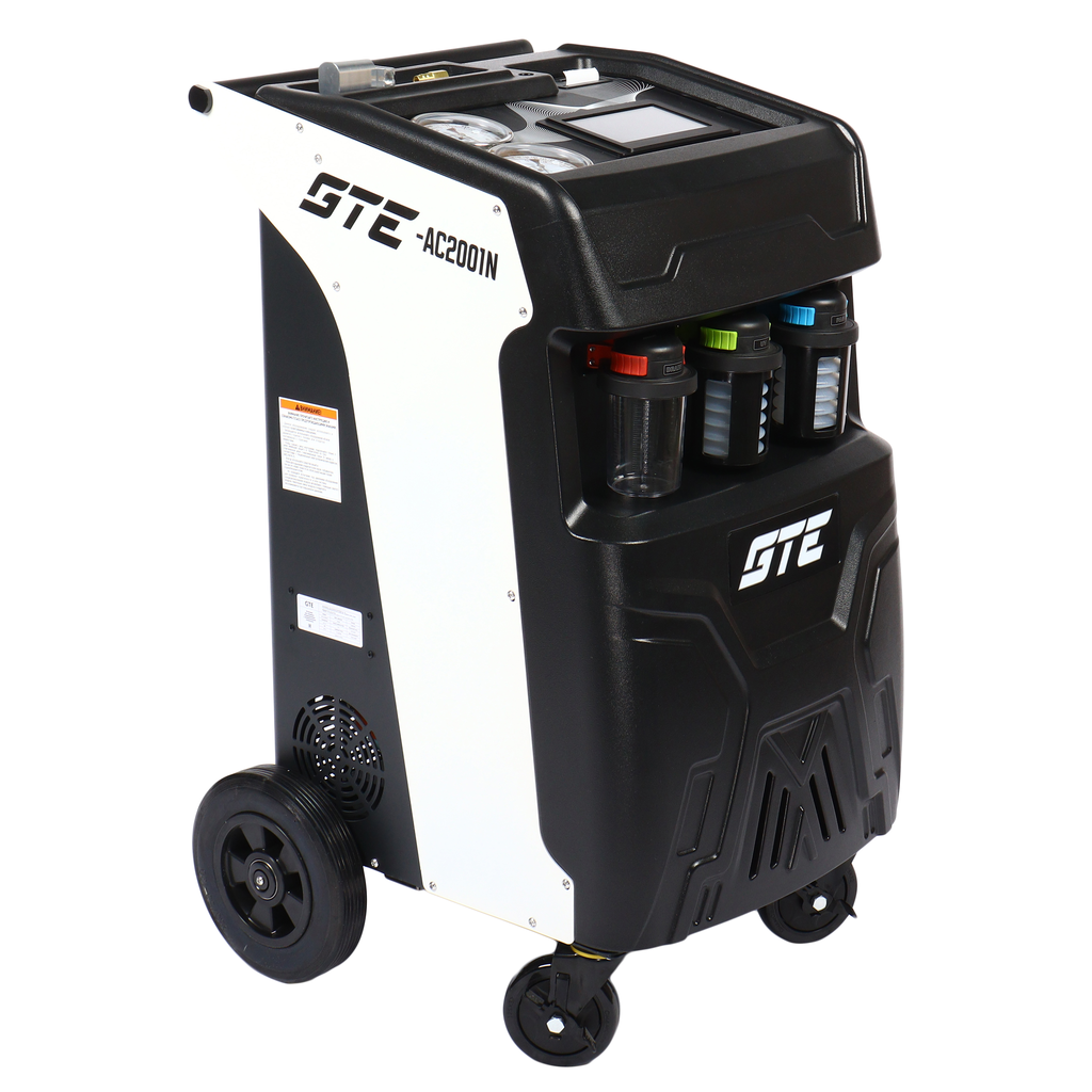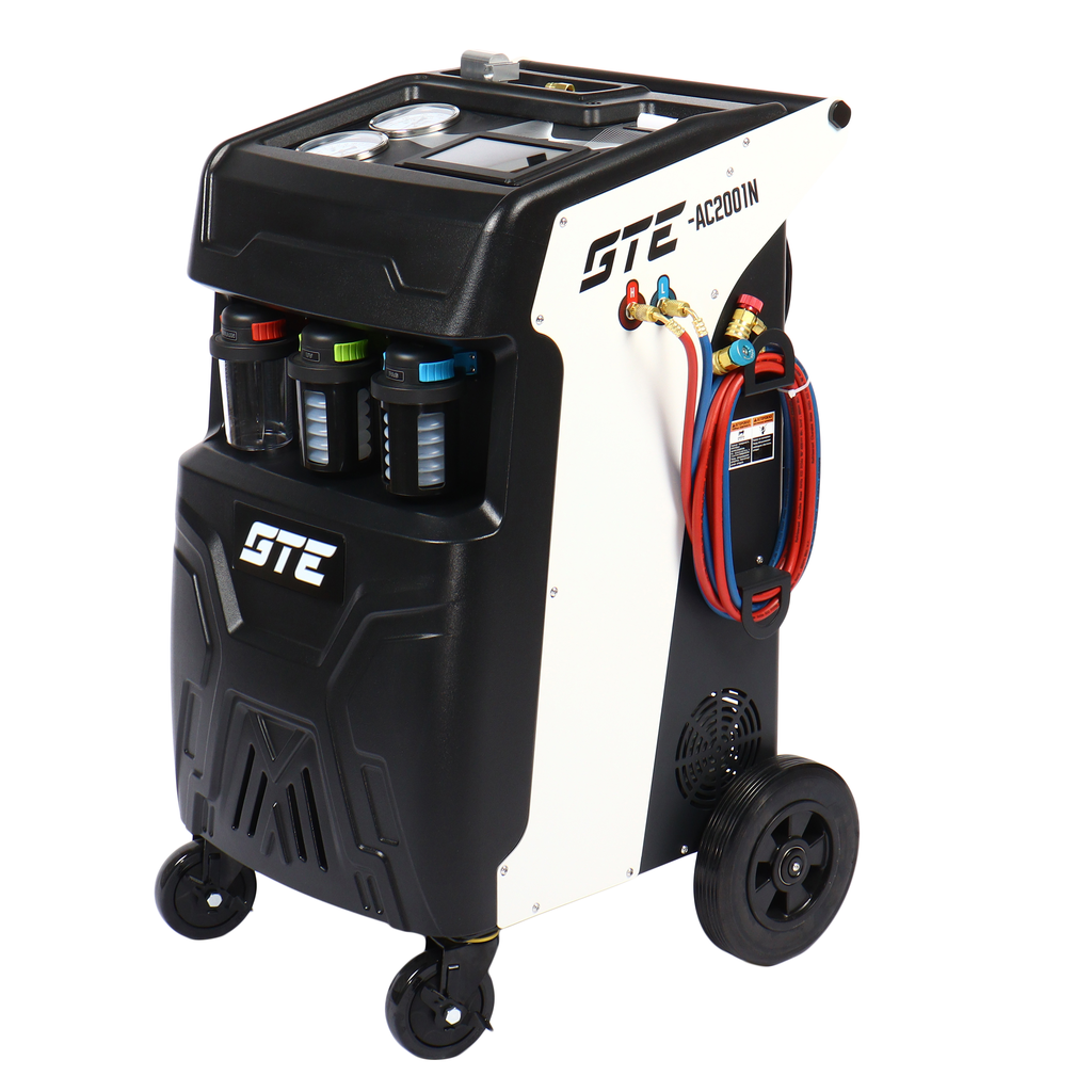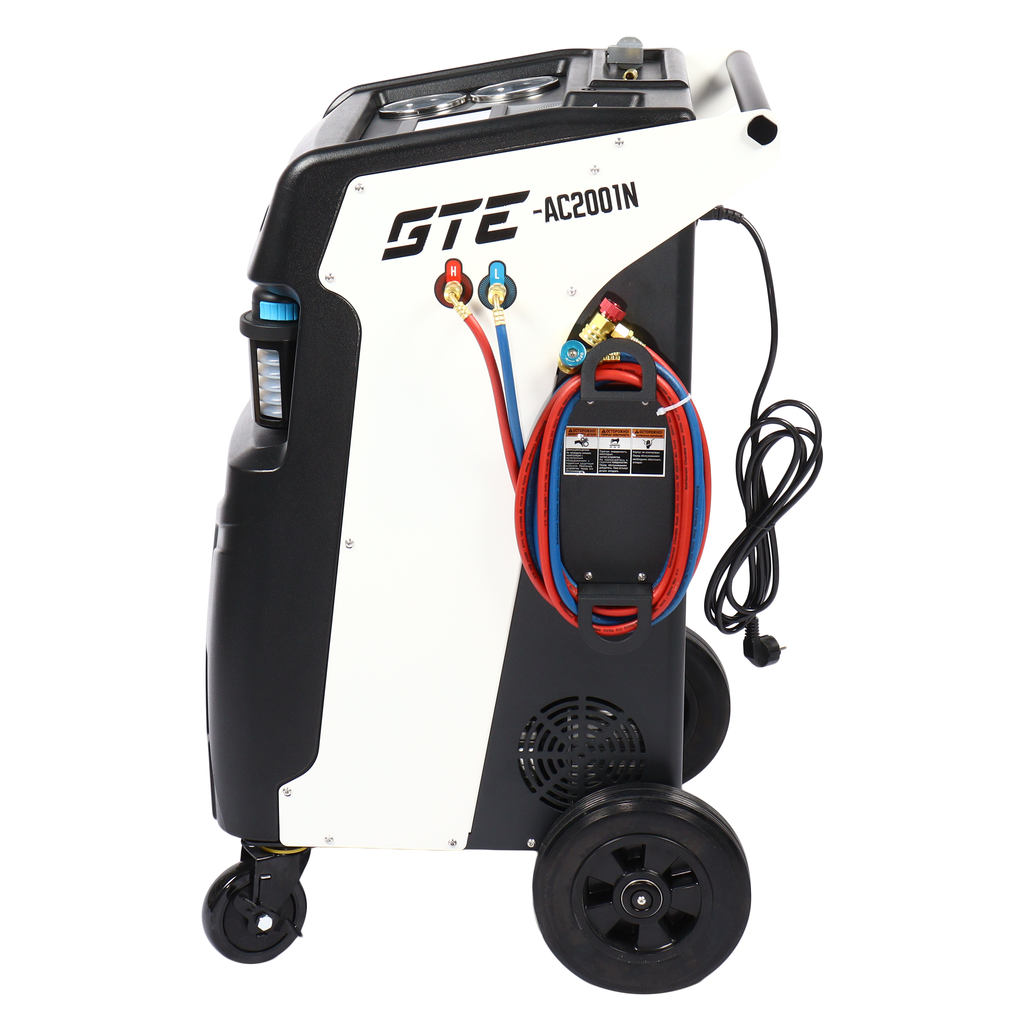 Универсальная автоматическая установка GTE-AC2001N с подогревом баллона, применяется для заправки и диагностики систем кондиционирования автомобилей. Установка работает с фреоном R-134a и обеспечивает автоматизацию следующих операций: запуск и остановка рекуперации хладагента, вакуумирование системы, запуск и остановка заправки масла по времени, а также заправка хладагента по электронным весам.