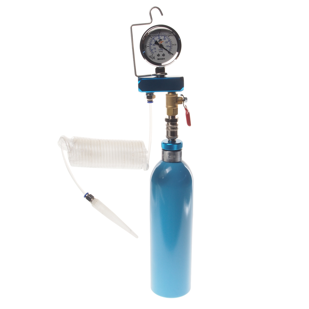 Комплектация Баллон объемом 650 см³. Вакуумметр со шлангом и насадкой для подключения. Описание Устройство предназначено для очистки камеры сгорания и цилиндро-поршневой группы. В результате осуществляется достаточно полное очищение камеры сгорания, выравнивается компрессия по цилиндрам двигателя, улучшается равномерность его работы. Восстанавливает подвижность клапанов и удаляет отложения со стенок камеры сгорания, из канавок поршневых колец, а также ликвидирует налет во впускном коллекторе, восстанавливает компрессию. Применяемые средства: JTC-4255P, LiquiMoly MTX Vergaser Reiniger или аналоги. Обладает целым комплексом присадок с сильным растворяющим эффектом, поэтому сначала удаляются все легкорастворимые лаковые и смолистые отложения. Затем в действие вступает комплекс ингредиентов данного продукта, обладающего высокими проникающими свойствами. Применение Чистка впускных клапанов. Чистки камеры сгорания. Чистка вакуумной системы. Тестирования вакуумной системы. Важные рекомендации Очистки камеры сгорания проводится на работающем двигателе, что позволяет удалить нагар с поверхности днища поршней (предотвратить возможность калильного зажигания), из канавок поршневых колец (восстановить подвижность компрессионных колец) и очистить направляющие стержни и тарелки клапанов (восстановить герметичность и предотвратить возможность зависания клапанов).