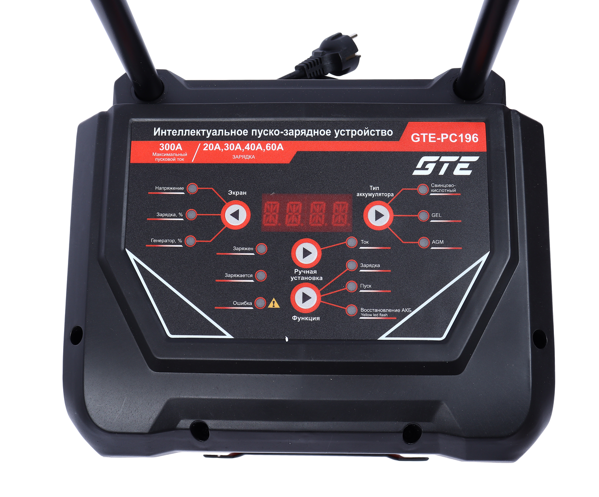 Пуско-зарядное устройство GTE-PC196 предназначено для быстрого заряда аккумуляторной батареи и запуска различной техники. Мощности GTE-PC196 достаточно для зарядки свинцово-кислотных АКБ, установленных на мотоциклах, моторных лодках и автомобилях с дизельными и бензиновыми двигателями.